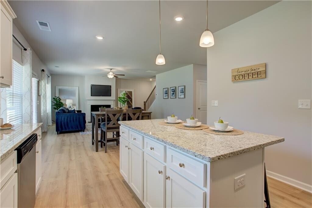 This stunning "ARLINGTON" 4-SIDES BRICK 4 bedroom, 3 bath home located in Clark Lake Village and built by Direct Residential Communities. OVERSIZED MASTER ON THE MAIN with walk-in his and hers closet. This home boasts a beautiful gourmet kitchen overlooking the family room. Gather around the elegant fireplace in the family room for those cozy evenings with loved ones. Enjoy the enchanting sounds of nature while unwinding on your spacious patio. Whether is is a chilly winter night or a relaxed summer evening, this patio creates the perfect focal point for gatherings. The second level has an oversized bedroom with a loft and a full-size bath. The secondary bedrooms in this home are all spacious. AMENITIES: Enjoy the soothing ambiance of the swimming pool, the lake with walking trails and more. Prime location conveniently situated in a family-friendly neighborhood with easy access to schools, parks, shopping and dining. This home offers the best of both worlds. This oasis is ready for you to call it home. Don't miss this opportunity. Make it yours today.
