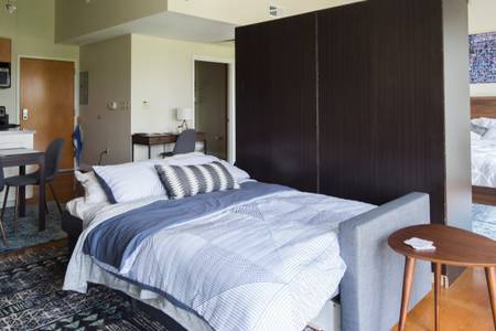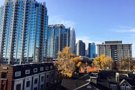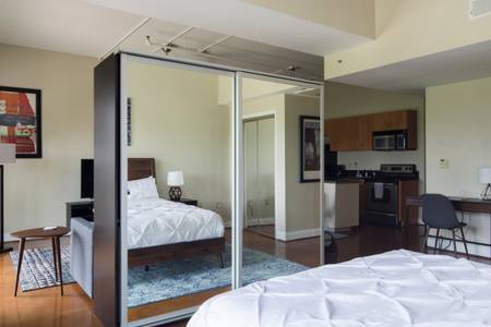 This lovely studio is an urban retreat! Beautifully furnished and cared for. Located in historic fourth ward, it is the perfect location for your stay in the Queen City! 4th Ward is the most charming with its mix of Victorian houses, gardens, and eateries. It is easy access from the interstate & to all of the major attractions from music to sporting venues. Everything included for an amazing stay. Secured building & gated parking garage, pool, and rooftop terrace, Gfiber WI-FI. This studio has everything you need to have an excellent stay in a prime location! Sleep soundly on the queen bed or sleeper sofa. The kitchen is equipped with basic cookware, utensils and cooking essentials for your use. The space is open with 11’ ceilings and large windows. Office desk allows you to charge your devices and get your work done. Gfiber wifi is fast and easy to connect. The building is secure with gated garage and designated parking. The location is amazing within walking distance to uptown corporate businesses, restaurants and clubs, shopping, museums and theater. Lynx Blue Line Light Rail (3 blocks) Spectrum Arena (6 blocks), Blumenthal Performing Arts (5 blocks), Romare Bearden Baseball Park (7 blocks), Bank of America Panthers Stadium (9 blocks).