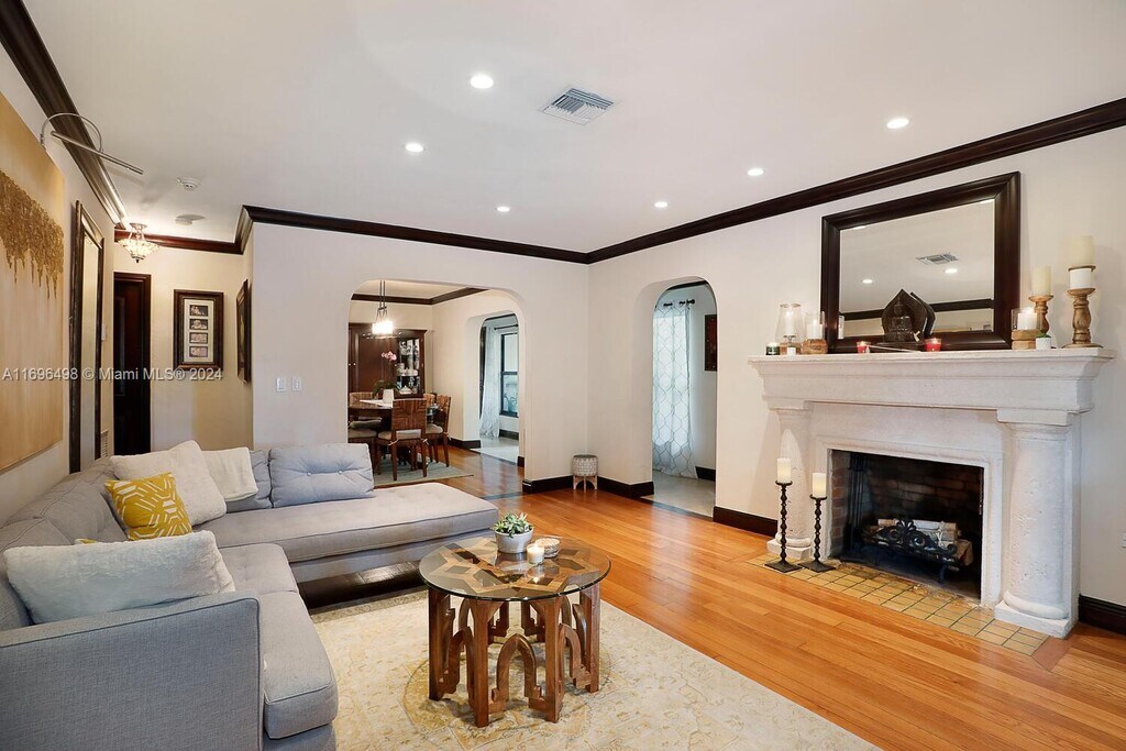 Welcome to 716 Mendoza Avenue, a stunning two-story residence in the heart of Coral Gables. Boasting over 3,000 sq. ft. of living space, this elegant and renovated home offers 4 spacious bedrooms, 4 bathrooms, and a dedicated office perfect for modern living and working from home. Step inside to discover bright, open living areas, polished wood floors, and an inviting ambiance. The updated kitchen features sleek countertops, premium appliances, and ample storage, making it a chef's dream. The primary suite offers a serene retreat with a spa-like bathroom and two walk-in closets, while the additional bedrooms are generously sized with ample natural light. The lushly landscaped backyard is an oasis, ideal for entertaining or relaxing in privacy. Enjoy the best of Coral gables living.