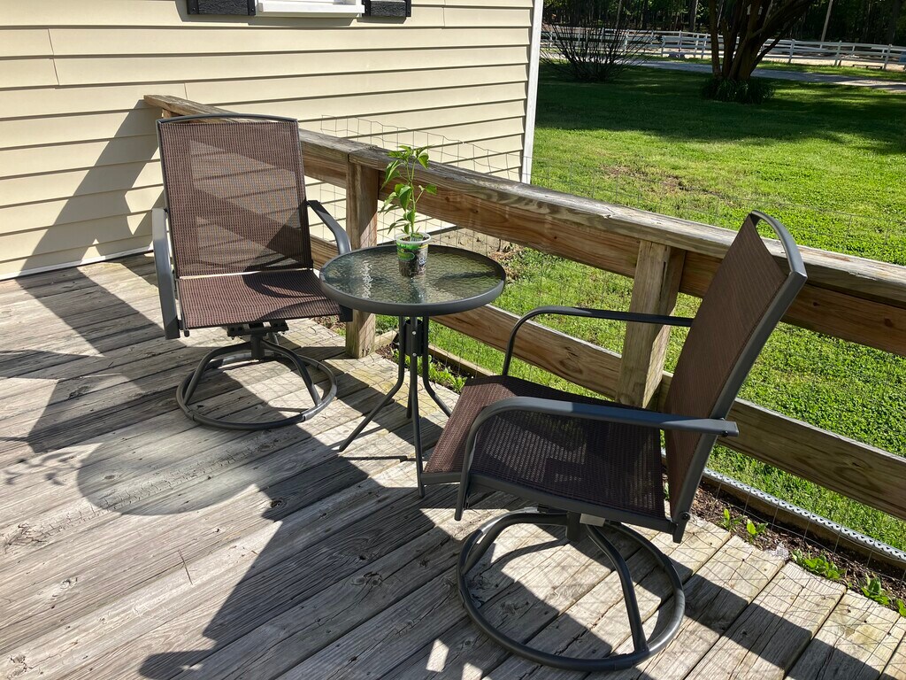 Fully furnished, within 30 minutes of Duke, WakeMed , UNC, Raleigh, Durham, 10 minutes to Creedmoor, 15 to Wake Forest Great location!!! Beautiful, private, country, in-law apartment . 1 large bedroom, large bathroom, large eat-in kitchen with pantry/closet storage room. Fully stocked with all you need to prepare a gourmet meal, except the food. Air fryer, toaster, Keurig, magic bullet, pots, pans, dishes, utensils, salt, pepper, coffee and tea. Glass slider doors lead out to your own Private deck, with plenty of room for a grill and dinette. Lots of great windows with views of the pond or the horses in the pasture. Great for anyone who appreciates a quiet calm tranquil spa like home and loves the country, but still close enough to wake Forest or Creedmoor (15-20 mins) or Raleigh/Durham/RTP (25-35 mins) laundry room will be available twice a month. All utilities included. Available November 1st, 2025. Lease terms flexible. To move in we will ask, first, last and one month security. Smoke free property.