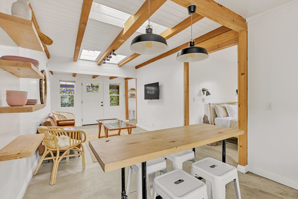 Welcome to your private Venice retreat a fully furnished, gated garden sanctuary offering indoor-outdoor living, custom design, and true California charm. This lease is for the front main residence, a spacious 3-bedroom, 3-bath home featuring an open-concept layout ideal for both daily living and entertaining. Step onto your expansive private front deck, complete with two exclusive hot tubs the perfect setting for unwinding under the stars. Beyond the front home, residents have access to a shared, serene courtyard garden nestled in the back of the property, framed by seasonal jasmine, mature greenery, and an elegant arched fountain. The courtyard is a tranquil setting for morning coffee, outdoor dining, or quiet relaxation, and is shared with two other units on the property. The on-site laundry room is also shared and conveniently located on the premises. Property Highlights:Fully Furnished with Curated, Custom-Designed Pieces, Two Private Hot Tubs on Your private Front Deck. Serene Shared Courtyard Garden with Arched Fountain and Lush Landscaping. Gated Property with Shared Laundry Room. Street parking only. Prime Venice Location Near Abbot Kinney, Rose Ave, and the Beach. This peaceful, move-in-ready oasis offers a rare long-term lease opportunity just minutes from the best of Venice living. Minimum 1-Year Lease | No Short-Term Rentals