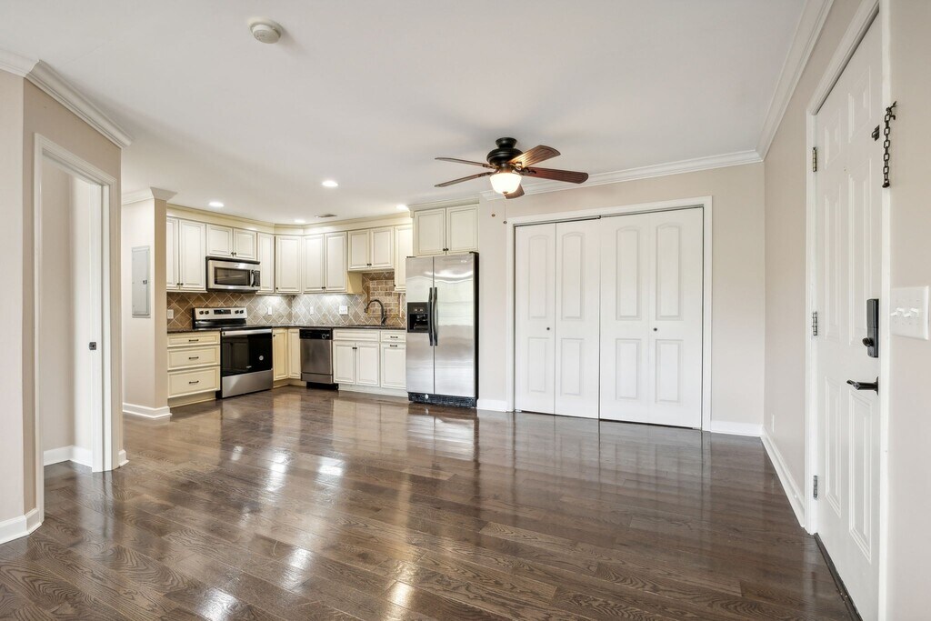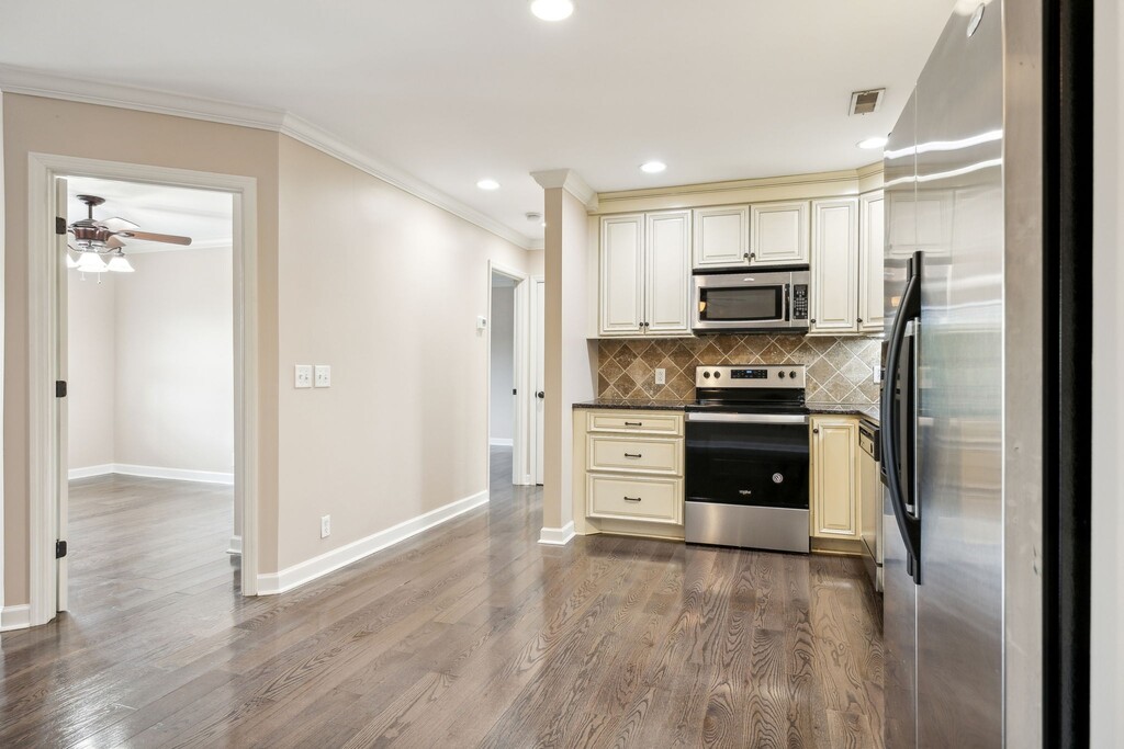This beautifully maintained quiet top-floor corner unit features 2 bedrooms and 1 bathroom with double vanities. The unit is recently updated with luxury engineered wood floors throughout! It features upgraded kitchen and bathroom with washer and dryer in-unit for convenience. Light and bright with recessed lighting and modern design. Conveniently located just minutes away from a developed shopping area with variety of shops, grocery stores (Publix, Kroger, Walmart), essential businesses, and 20 min to downtown Nashville. Easy access to everything you need for a hassle-free lifestyle. Pets are allowed on a case-by-case basis with a $25 rent a month. Tenant pays electricity only, water is included in the monthly rent. 2 unassigned parking spaces in front of the build (no issues finding a spot). 12-month lease. Security deposit $1595. Tenant pays electricity only. Pets allowed on a case-by-case basis with a $25/mo rent. Max 2 pets. Absolutely no smoking.