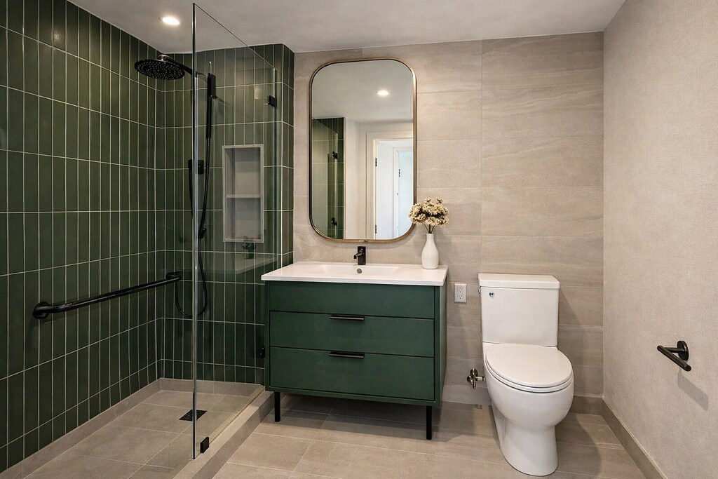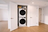 This thoughtfully designed residence offers a bright, modern layout with clean lines and high-end finishes throughout. The open-concept living and dining area provides excellent flow, ideal for both everyday living and entertaining. Wide-plank flooring and oversized windows bring in abundant natural light, creating a warm and inviting atmosphere. The contemporary kitchen features sleek cabinetry, stone countertops, stainless steel appliances, and a generous island with seating—perfect for casual dining or working from home. The bedroom is well-proportioned, easily accommodating a queen-size bed and additional furniture, and offers a calm, private retreat. A spacious closet provides ample storage. Additional highlights include a spa-inspired bathroom with modern tilework and fixtures, as well as in-unit washer and dryer for added convenience. This residence combines functionality, comfort, and modern design in a full-amenity building, making it an excellent option for refined Brooklyn living.