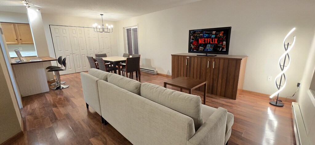 Welcome to your next short-term home—a relaxing, pet-friendly, 3-bedroom, 2-bathroom corner town home located in the heart of Chanhassen. Forget the stress of utility bills and yard work; this is the low-maintenance, perfectly positioned home you've been searching for. Whether you're relocating, needing a temporary executive stay, or seeking a comfortable base, this home fully furnished home offers an unparalleled combination of a walk-able location, modern comfort, and all-inclusive living. Local Area: Family friendly community (next to city park, public library, Chanhassen Dinner Theater, and Chanhassen Elementary School) Fantastic location - walking distance to everything you need (Restaurants, Southwest transit bus station, Target, Lunds & Byerlys, Coffee shop, Cinemas, banks, and community garden) Easy access to Highway 5 and 212. Unit Features: Corner townhouse with large yard in rear 2 level floor plan with spacious living room, open concept dining and kitchen in lower level. 3 bedroom on 1 level 1.75 bathrooms (full bath upstairs and ¾ bath on main level) In unit washer/dryer Single stall, detached, private garage with parking area. Agreement Highlights: Utilities included in Rent: Water, sewer, trash, garage access, mowing, snow removal, electricity (Electricity includes heat & air conditioning) and internet. Note: There are no gas appliances. Can Park 2 Vehicles, 1 in the driveway and 1 in garage. Both will need an Association Permit. 1 Small dog under 50lbs OK No smoking in unit or within 30 ft of the unit Must follow terms and conditions of association and lease. Financials: $35 application fee per adult (covers background and credit checks) Pet fee: $150 per pet (as applicable) Deposit: $500 Due at signing: 1st month rent, plus security deposit