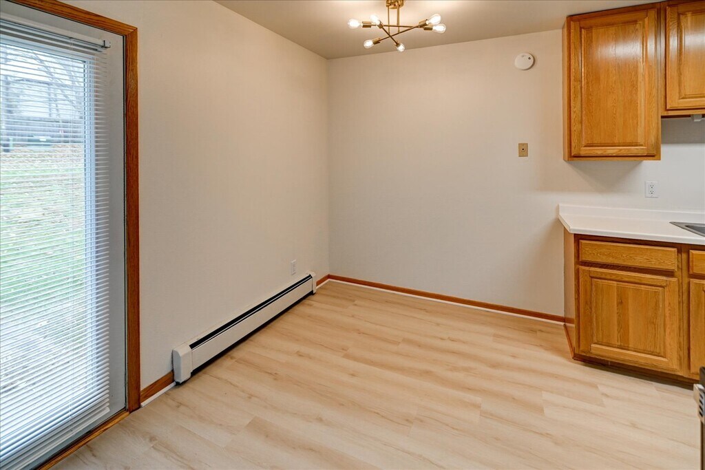 Well-maintained, bright 2-bedroom, 1-bathroom apartment in a quiet Middleton neighborhood. Near Tiedeman Pond, walkable to downtown Middleton, and easy access to UW Health, and UW–Madison. Apartment Features: • New flooring & freshly painted • Private patio • Bright, open living area • Kitchen with new stainless-steel refrigerator, oven, and microwave • Extra storage space included in rent • One off-street surface parking spot included in rent • On-site coin laundry Utilities & Policies • Tenant pays electricity to MGE • Tenant pays $25/month per person for heat & water/sewer • No pets