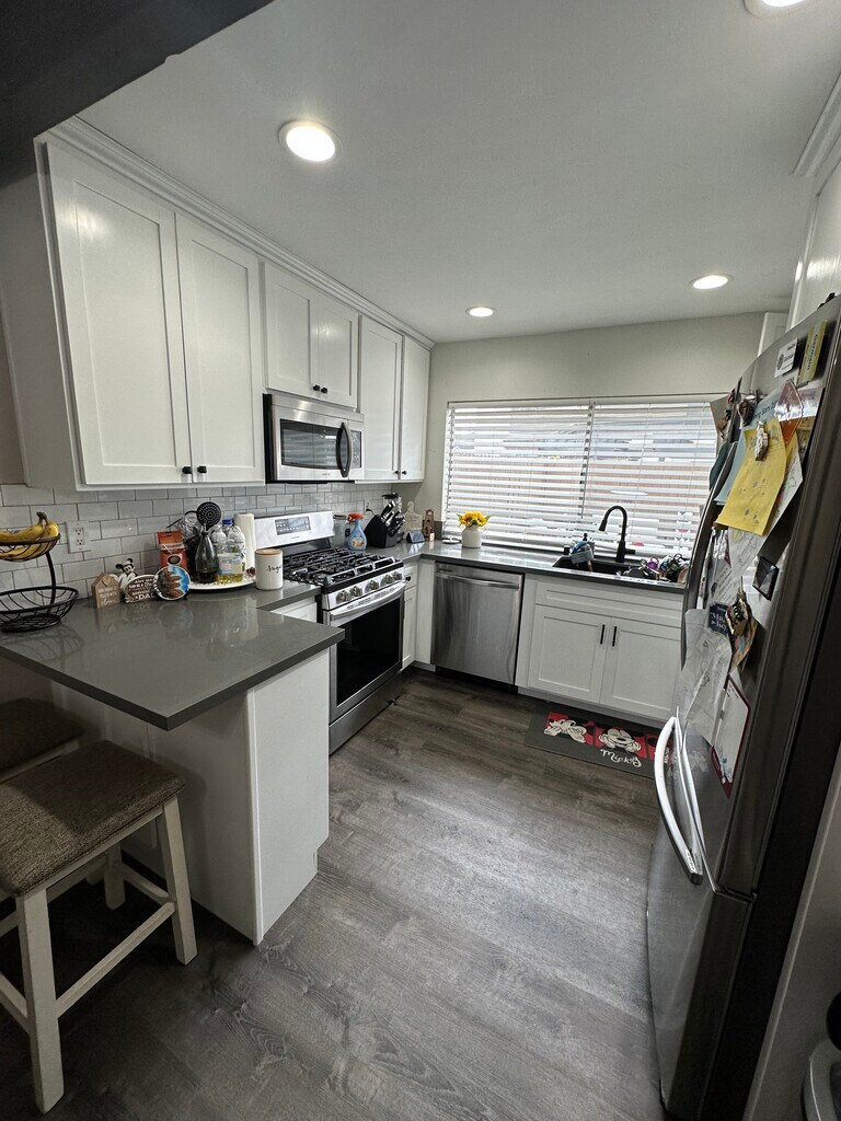 Welcome Home! This property is located in North Oxnard and is ready for rent. This unit is not an apartment is a condo. With more privacy and is located in a great community, very peaceful and great for a family. Water, trash and sewer expense is included. Start by walking into a spacious living room with a charming spacious living room with wood floors and plenty of natural lighting . The dining area is located central to the kitchen and living room. The kitchen is fully remodel with a gas stove above range microwave and refrigerator .This home has a nice size private patio to enjoy. There is also a laundry room for a washer and dryer and has plenty of storage with above cabinets. We also upgraded the flooring throughout the home, as well as upgraded the reset lighting through out the home. There is also a 2 car garage with automatic opener and is located in a close proximity to the home, and plenty of nearby parking for overnight guests. This property is located in a quiet community with access to the community pool. The home is located in close proximity to the Collection and Esplanade shopping centers with entertainment, shops, grocery stores, freeways ,restaurants and short drives to beaches, channel island harbor and River Ridge Golf course. THIS IS A MUST SEE!