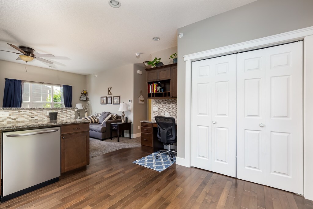Beautiful Home in Peaceful Le Claire available Sep 1, 2025. This home was built in 2015 with hand chosen colors and materials! 2 Car garage - extra deep and mounted cabinets for plenty of storage. Each bedroom has its own private bathroom and walk in closet. Master shower is a fully tiled walk in shower. Other features: Built in desk and full size pantry closet, Electric fireplace with mantle, Stainless steel appliances (New 2015), Washer and dryer in dedicated closet in upstairs landing outside bedrooms (New 2015), Granite counter tops, Real hardwood flooring, Intercom with remote unlock. HOA takes care of lawn care and snow removal (including driveways) above 2-3"- HOA fee included in rent. Backyard view includes woods/wildlife and the Mississippi. Located just off I-80. You'll be surprised how short your commute is! All utilities are tenant responsibility.