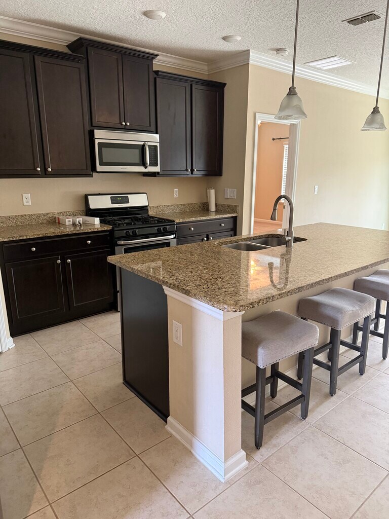 This 3-bedroom, 2-bathroom home is perfectly situated on a gorgeous lot with peaceful pond views and plenty of outdoor space. Inside, the open-concept design flows beautifully, anchored by a spacious kitchen featuring a large island with breakfast bar, pantry, and stainless steel appliances. The dining area and living room connect seamlessly, making it easy to gather and entertain. The primary suite offers a true retreat with its generous layout, walk-in closet, and spa-like ensuite with dual vanities and walk-in shower. Two additional bedrooms and a full bath provide flexibility for guests or a home office, while a dedicated laundry room adds convenience. Enjoy the screened lanai overlooking the water or take advantage of the expansive backyard and patio - perfect for grilling, lounging, or hosting friends. An irrigation well helps keep the lush landscaping looking its best year-round. A two-car garage completes the package. Living in Palencia means more than just a home - it's an experience. Residents enjoy access to multiple resort-style pools, playgrounds ,a state-of-the-art fitness center, and numerous premier tennis and pickleball courts.