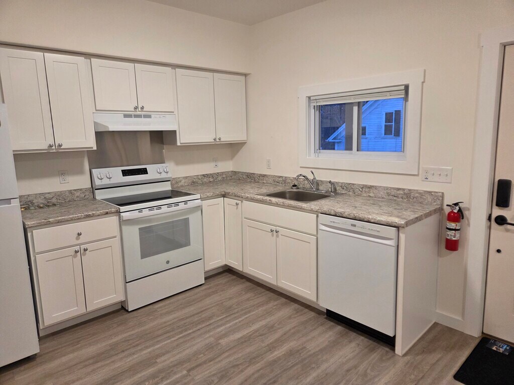 Unit 3 is a beautifully renovated first-floor 2-bedroom apartment in Bradford, Vermont. All new carpets and luxury vinyl plank flooring, range, oven, hood, cabinets, refrigerator, and dishwasher. All new bathroom with vanity, lighted medicine cabinet, toilet, and tub/shower. All plumbing and electrical is new and up to code. Hardwired CO and smoke detectors. All new drywall, trim, interior doors, hardware, and paint throughout. All new windows and exterior doors. Blinds on windows. Heat pump with ventilation system provides quiet and comfortable fresh air, heat, and air conditioning with through-wall fans for air circulation. Super-insulated makes for a quiet apartment. Sun-filled, with east-facing windows fill Unit 3 with gorgeous morning light. Private elevated covered porch is included with Unit 3. Two blocks from downtown Bradford. Off-street parking. Walking distance to shops, dining, library, entertainment, parks, healthcare, public transport, grocery store, employers, services, and schools. Parking, heat, A/C, hot water, electric, water, sewer, and trash/recycling is included in rent.