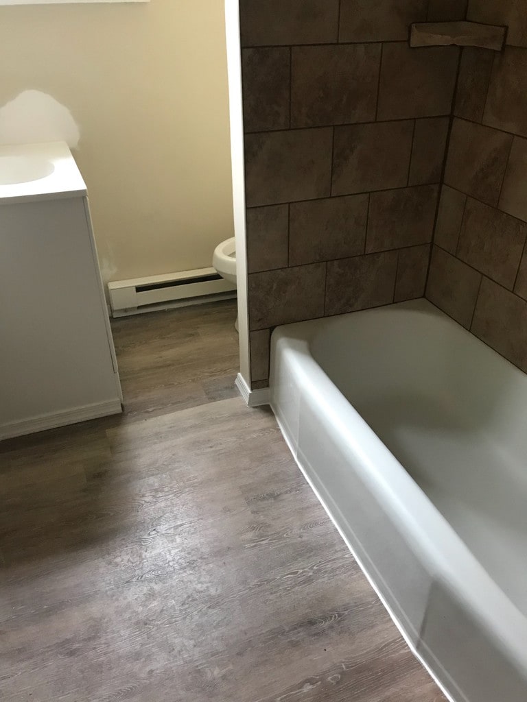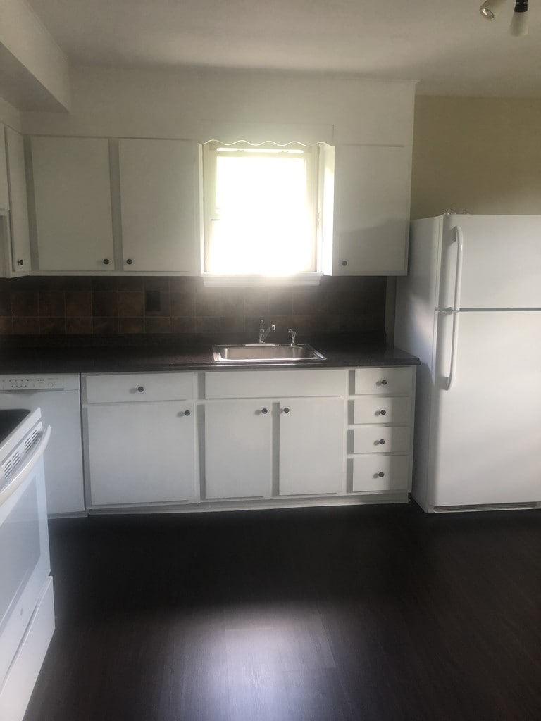 Located in a private development. Scenic view of the wooded area surrounding the development. Landscaped yard, private parking lot directly in front of building, large concrete patio for entertaining. 2nd Floor Apartment: 2 bedrooms (new wood floors), living room (new wood floors), Eat-in kitchen (new wood floor), bathroom (new wood floor, tiled shower) and Laundry room with a washer and dryer. (Brand-New Apartment, Ultra-Modern) Appliances Included: Fridge, Stove, Dishwasher, Washer, Dryer Utilities included: Water First month rent + last month rent + security is due at the signing of the lease. Please call me with any questions, no emails.