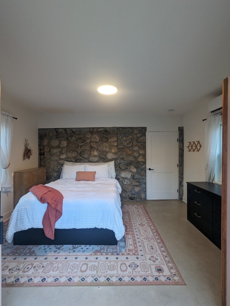 This charming 1 bedroom, 1 bath back-house is the ground floor unit hidden behind a tranquil citrus orchard. Beautiful quartz countertops, brand new cabinets with matching appliances (Stack washer/dryer, stove, microwave), charming clawfoot bathtub/shower, new fixtures, open floorplan and space. Plenty of fruit trees including valencia oranges, champagne grapefruit and the best meyer lemons we've ever had. Bedroom has french doors out into the backyard. Brand new minisplit HVAC system. Plenty of natural light with all of the new windows. Floor is stained and sealed concrete for a chic industrial, but easy to clean look. This is a downstairs 1 bedroom apartment. There is a separate upstairs studio unit that is occupied by a nice tenant. Tenant to pay a flat fee of $200 per month for all utilities including electricity, wifi internet, trash, and water. (All appliances are electric including HVAC, water heater and washer/dryer). No gas utility cost. No smoking please.