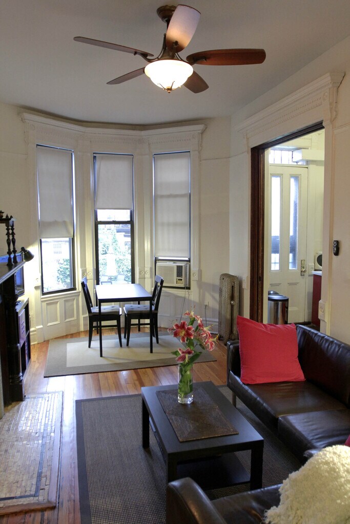 Garden Open Floor 1 Bed/1 Bath Brownstone APT (FIOS internet ready- Unfurnished) This charming and spacious 1 bedroom open floor garden apartment has a backyard, renovated full size kitchen with stainless steel dishwasher and microwave, a new AC split unit, a full bathroom with bathtub and it's on a beautiful block. Heat and hot water is included. It has hardwood floors, new windows and new electrical. Beautifully appointed apartment was designed and built in 1895. It has many of its original features, decorative chimney with original mantel, tin ceiling, original moldings and windows shutters. The apartment is a 1890s brownstone in the historic section of Bedford-Stuyvesant Apartment Features: - Backyard /garden - 1 Modern Kitchen with stainless steel dishwasher and microwave - 1 Bedroom - 1 Full bathroom with a bathtub - Beautiful Hardwood Floors - Exposed bricks - 1 New AC Split unit - Heat and hot water included - FIOS internet ready Neighborhood Amenities/ Bedford Stuyvesant Heights: - Short walk to Utica Ave. stop of the A/C express/local train - Short walk to kosciuszko St or Gates Ave. stop of the J train - Close to laundry places. - Street parking. It is only 20 minutes away by subway ride to Downtown Manhattan, Soho, Tribeca, and Williamsburg; and 10 minutes subway ride to Bushwick. It's also waking distance to trendy restaurants like Saraghina, L'Antagoniste, Chez Oscar, Peaches and bars like Lunatico, Casablanca and Turtles all the way down. No smoking. No pets. No washer/dryer. Background and Credit check $50 per person MUST HAVE VERY GOOD CREDIT, LETTER OF EMPLOYMENT, BANK STATEMENTS, W2, RECENT PAYSTUB
