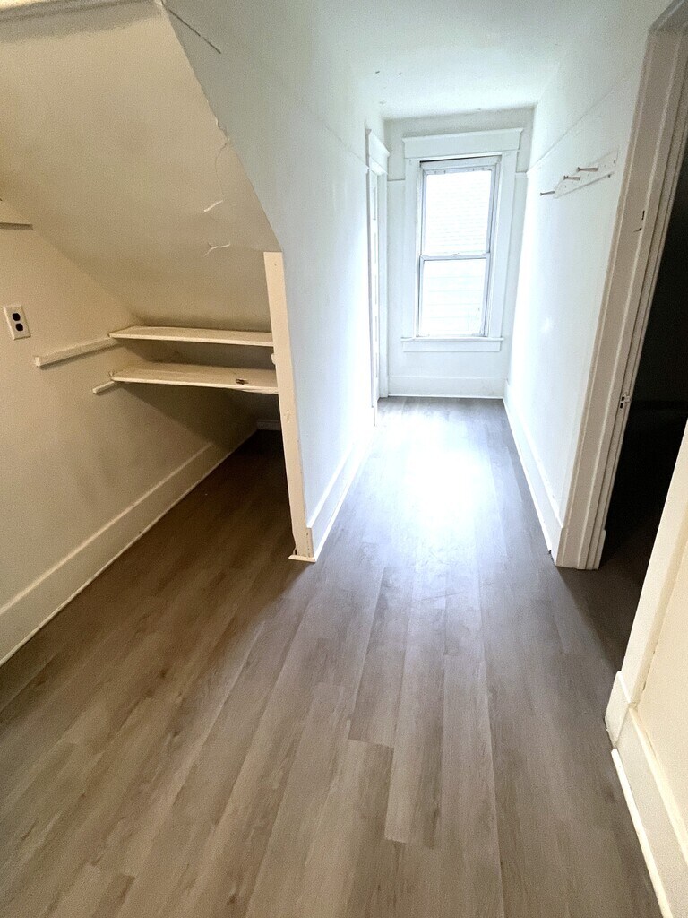 Spacious and updated one-bedroom apartment on the second floor. Newer flooring. Updated kitchen. Street parking. No pets. Tenant pays gas & electric