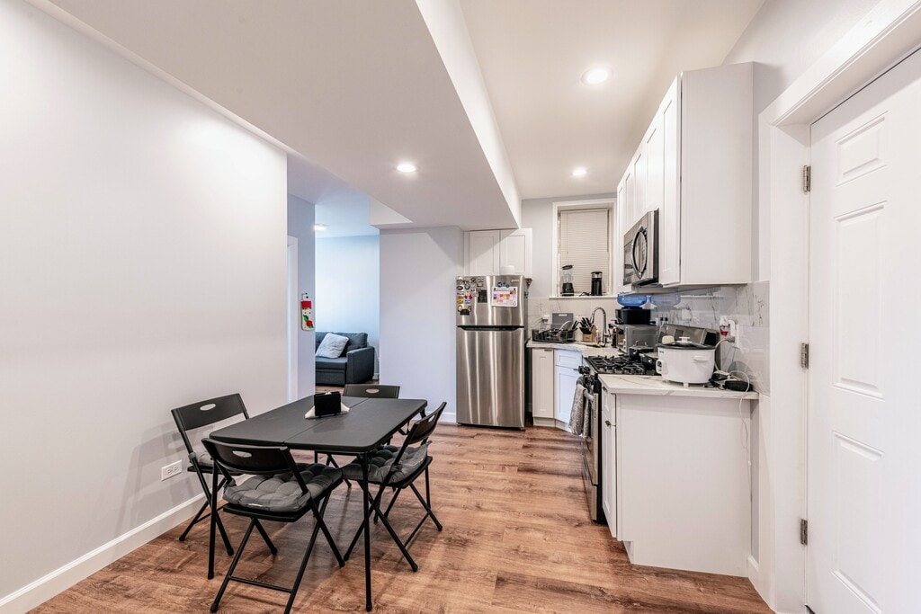 We are pleased to introduce our newly available apartments AVAILABLE NOW! The units has been updated with new hardwood floors, creating a warm and inviting living space. You'll also find new stainless steel appliances and granite countertops in the kitchen. On-site LAUNDRY facilities are available for your convenience. Street PARKING is available for free. We welcome pets with a pet-friendly annual fee of $350. We are confident that our clients will love it. Walking distance to the blue line, coffee shops, restaurants and bars and grocery stores.