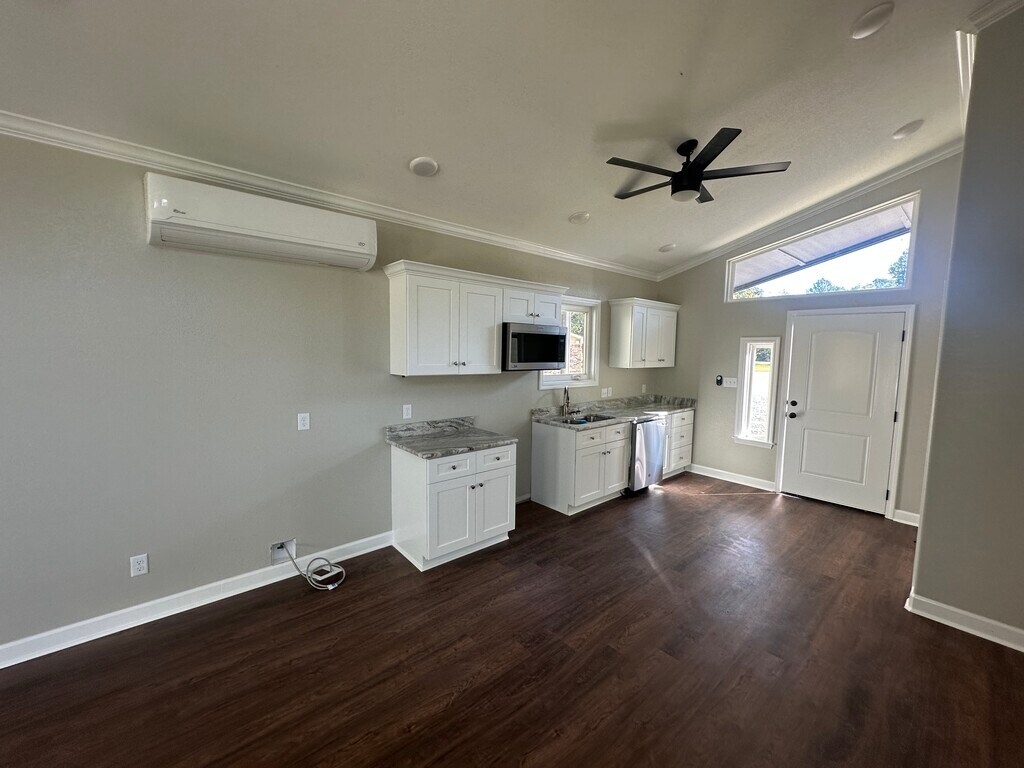 Welcome to this brand-new, thoughtfully designed 1 bedroom, 1 bathroom home offering modern finishes and low-maintenance living. This newly built residence features an open floor plan with abundant natural light, luxury vinyl wood flooring, and energy-efficient systems throughout. The kitchen boasts granite countertops, stainless steel appliances, plenty of cabinetry perfect for cooking or entertaining. The spacious bedroom includes a large closet, and the bathroom offers a sleek vanity with contemporary fixtures and a full-size tub/shower combo. Additional features: In-unit stackable laundry hookups Private outdoor space (patio or yard) Tankless water heater