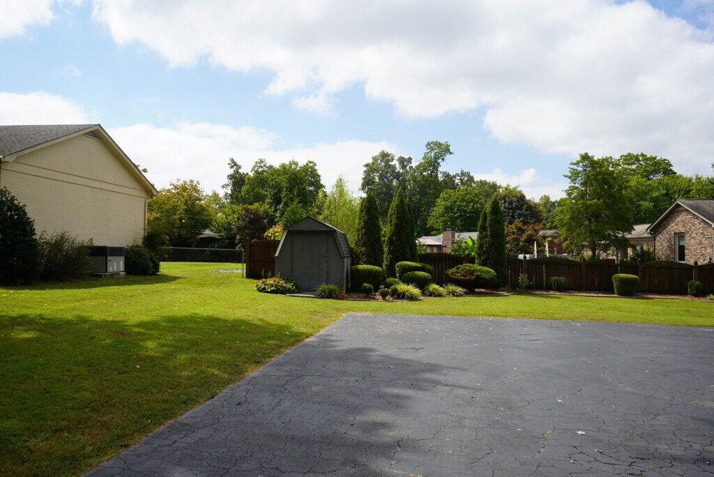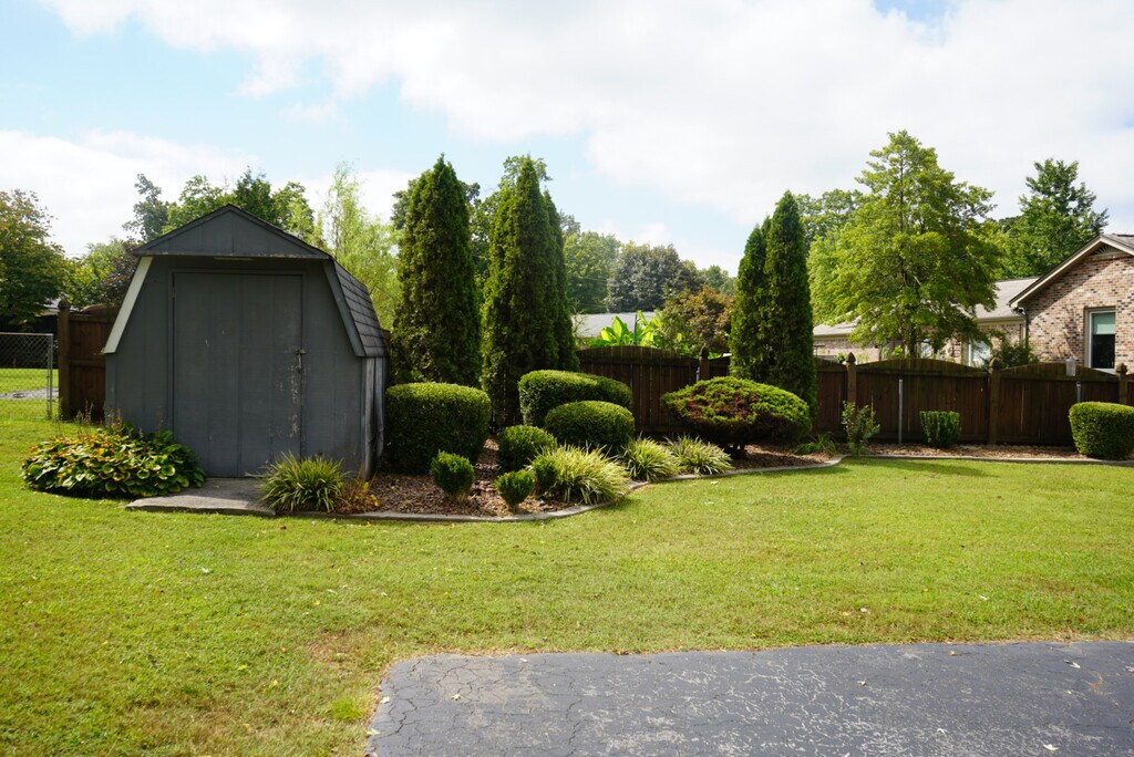 Charming 3-Bed, 2.5-Bath Home • Dining Room: Chandelier and warm atmosphere. • Living Room: Bright, cozy, lots of natural light. • Foyer/Second Living Area: Three closets for coats and storage. • Laundry Room: New washer/dryer, built-in shelves, half bath. • Garage/Storage: Two-car garage with attic and storage closet; outdoor shed. • Bathroom: Sliding tub door, large storage closet. • Bedrooms: Three total; one with built-in shelves. • Primary Suite: En-suite bathroom with shower. • Outdoor Space: Covered back porch, fenced yard, grassy play area, front porch swing. • Included: Fridge, dishwasher, microwave, foyer ceiling fan, carpet cleaning before move-in. Lawn care and weed control included. Comfortable, well-kept home with great storage and outdoor space.