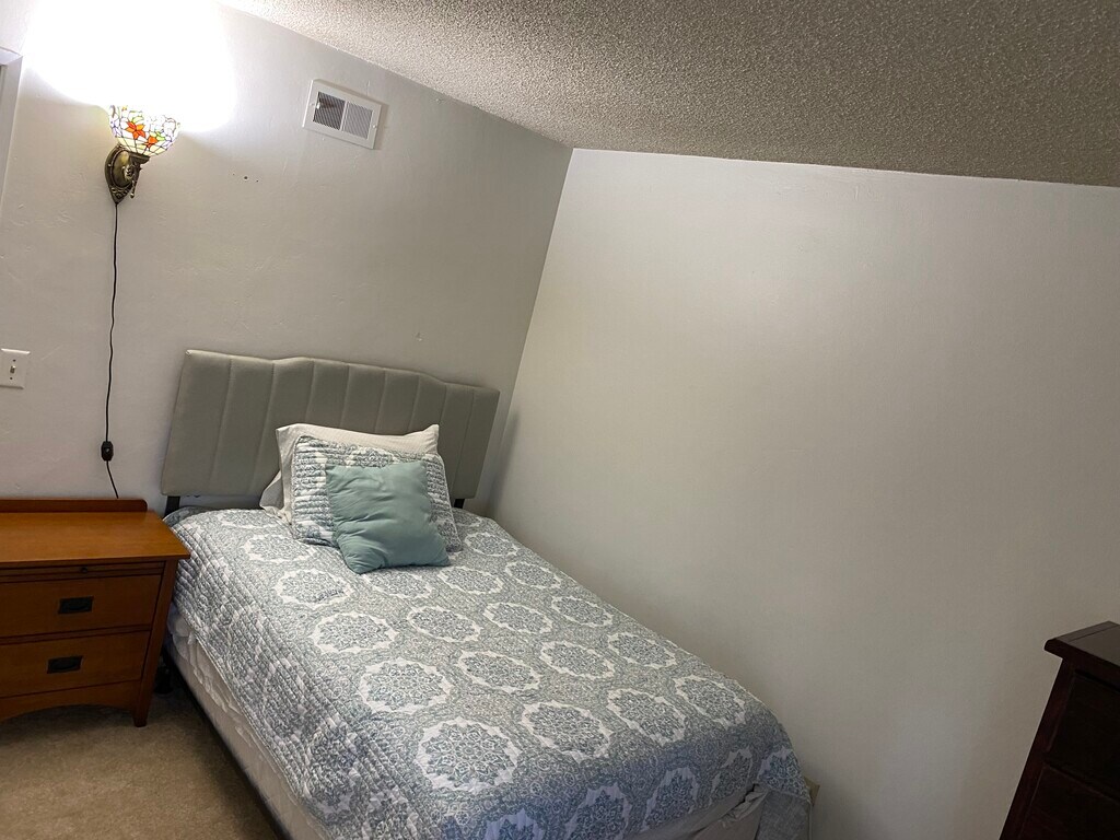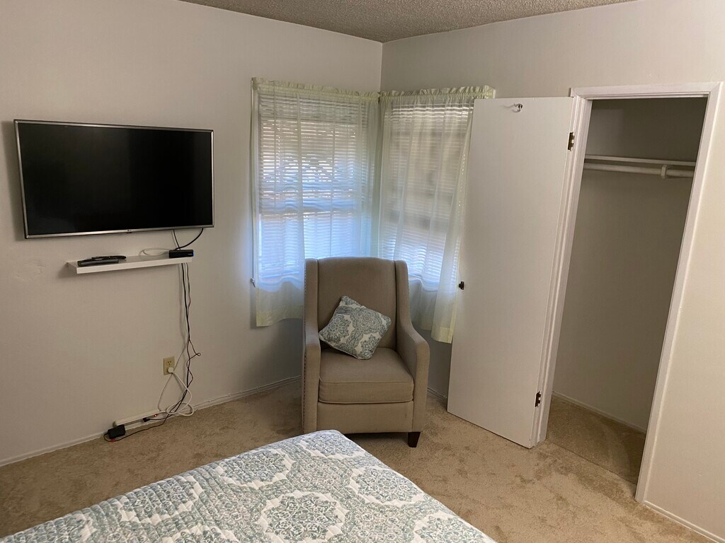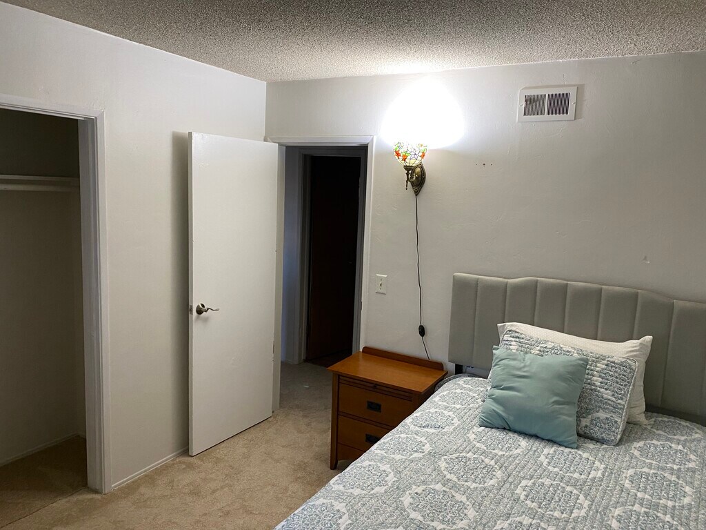 One room for rent in 4 bed, 2 bath house. $1,000 per month. All utility bills are included in the rental price. Contract is month-to-month. Laundry and Kitchen privileges. New Carpet installed. Room size is 116 square feet and furnished. Furniture includes a full size bed, armchair, dresser, nightstand and 43” television. Internet access included. House has 1 dog, no new pets please. $500 deposit. Thank you.