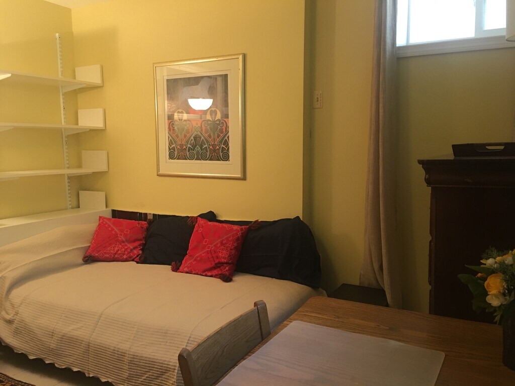 Spacious studio apartment kitchen and sitting area.Cozy furnished studio apartment in an impeccably maintained grand Queen Anne Victorian home. All utilities and WIFI included · Semit private entrance by a side door next to the yard with stairs to the 3rd floor. · Contains one large room with a separate kitchen area with refrigerator, sink, dishwasher, stove top, combination microwave and oven, and counter space. · Separate sitting area, a desk facing the windows, and a sleeping area with twin beds or made into a king. · The 450 square feet · All utilities, WFI, window AC, linens and kitchen supplies provided. · Conveniently located, 1 block from Washington Square, with wonderful restaurants and shops, including our favorite European bakery and sandwich shop. · Subway just 15 minutes to downtown Boston, 10 minutes to Boston University and the Longwood Medical area, and 10 minutes to Boston College in the opposite direction. · PS: Your hosts speak French, Spanish, Danish, Russian, and Polish. 1 block to Beacon St subway green C line. 5 blocks to Commonwealth Ave subway to BU or BC. Bus #65 to Longwood Medical area at Washington and Bartlet. $145 departure cleaning fee