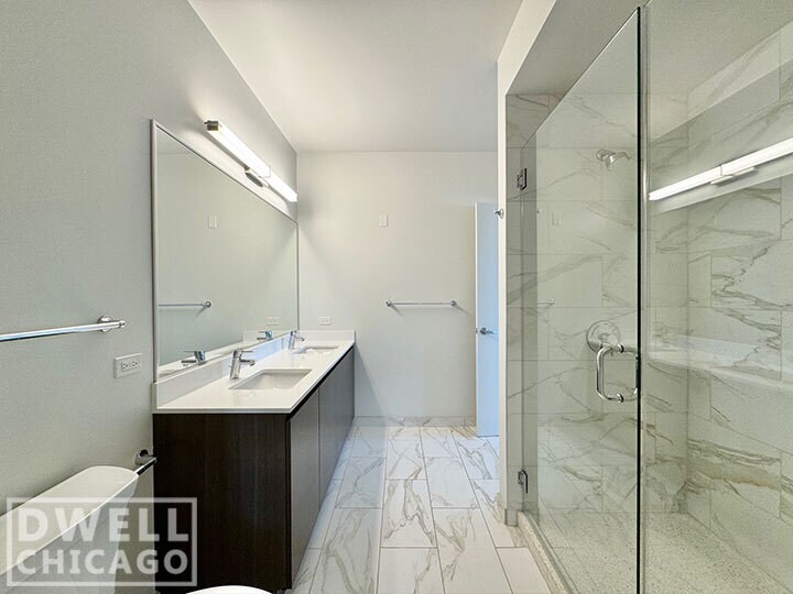 Sunny 2 Bed 2 Bath @ Low-Key West-Town Amenity Building - Quartz countertops with full-height backsplashes - Stainless steel appliances - Plank flooring - Spa bathrooms with double sinks - Walk-in closets with organizers - Nest® thermostats - Floor-to-ceiling windows and balcony Shared Amenities: - Lounge with 85” flat-screen TV with surround sound - Rooftop party room with full kitchen, grills, and outdoor dining area - Fitness center - Business center w/ co-working pods - Sun deck with pool - Dog wash and run areas Photos in ad may be of a similar unit on a different floor. Lease start date, pets, lease term can all affect monthly cost