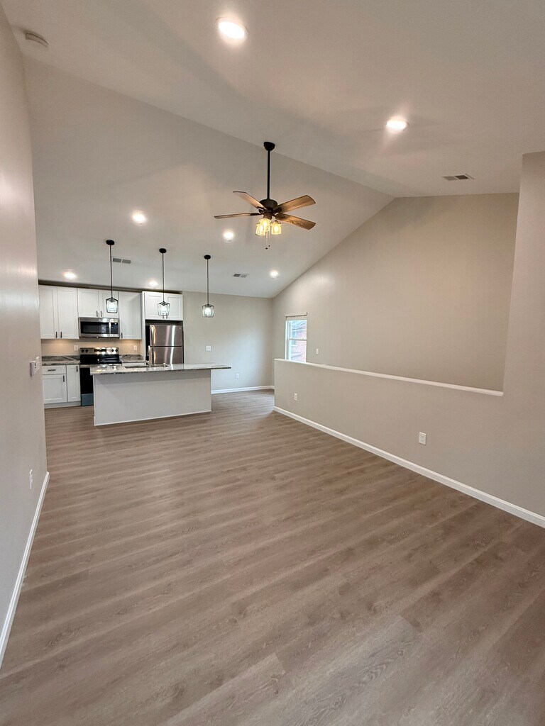 Welcome to this newly built second-floor carriage house apartment, where soaring cathedral ceilings and an open, light-filled layout create a refined yet comfortable living experience. Enjoy downtown views from your living room an ideal backdrop for both quiet mornings and relaxed evenings at home. Includes 1 outdoor off street parking space. (Space in the garage is not included) This thoughtfully designed space includes luxury vinyl flooring throughout, a gourmet kitchen featuring granite countertops, and stainless steel appliances. A full-size washer and dryer are included for everyday convenience, along with off-street parking located just steps from your private entrance. Storage is never a concern with two spacious walk-in closets. Situated steps from some of Olde Towne East's neighborhood favorites Gemut, HangOverEasy, The Olde Oaks, Olde Towne Tavern, Osteria Pizzeria, and AWOL you'll be surrounded by a vibrant, walkable community. Downtown Columbus is just a short stroll away, offering added convenience and connectivity. Opportunities like this don't stay on the market long. Schedule your private showing today and secure your place in Columbus's most vibrant historic neighborhoods.