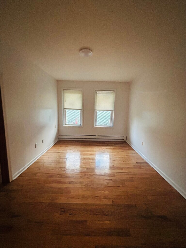 Approx. 650 sq. ft., this bright first-floor, 2-bedroom apartment features beautiful hardwood floors throughout and a fresh, updated look. A laundromat is conveniently located right next door, making laundry days simple and hassle-free. Enjoy day use of a shared backyard, perfect for relaxing outdoors. Off-street parking. Sorry no pets. Located in the heart of Harrison, just 10 minutes from the PATH Station, and close to stores, restaurants, and local amenities. Don’t miss out on this great opportunity! *Floor Plan Attached*