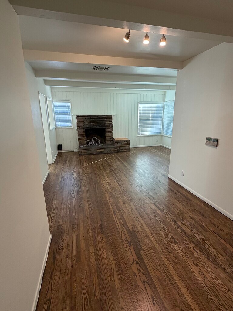 Newly updated house with beautiful front yard and a detached office. Bright and sunny open space with refinished hardwood floors and a brick fireplace. Charming details with all new appliances, including refrigerator, stove/oven, microwave, dishwasher and a washer/dryer. Central heating and air. 2 parking spaces. Monthly gardening included.