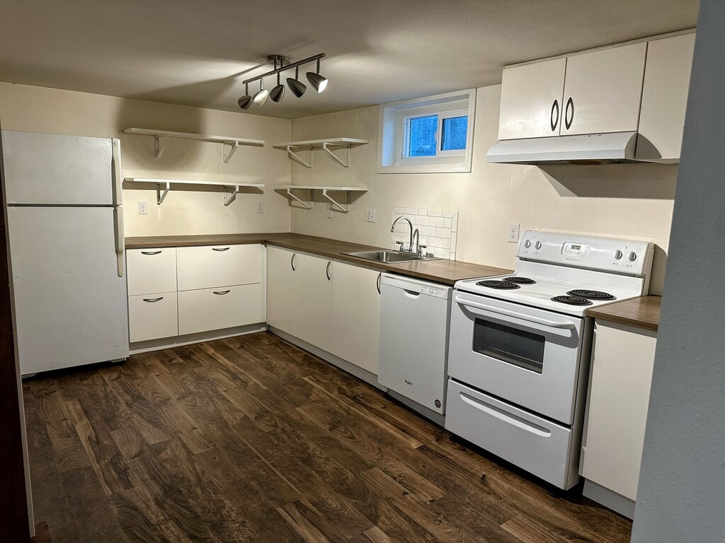 Comfy, modern, 2 bedroom/1 bath basement apartment in a single family home. The unit includes off street parking in the driveway and a shared laundry and storage space. The storage area is great for keeping bicycles. The large bright kitchen includes a stove, vented hood, fridge and dishwasher and is open to the living area. There is a sunny shared patio and yard. *Some photos are from previously staged set-up. No smoking. Residents pay electric through PGE. The unit has its own electric meter. Monthly fee of $75 to cover garbage and water. Security deposit equal to one month rent due at move in. $500 Deposit to hold the apartment due at lease signing. One cat allowed with extra pet deposit of $250. Application required for each person over 18 years old who will live in the unit. $45 fee per application. Proof of renter's insurance is required prior to move in. Accessible Dwelling Unit: No. Applications accepted starting 10/13/25 at 5pm.
