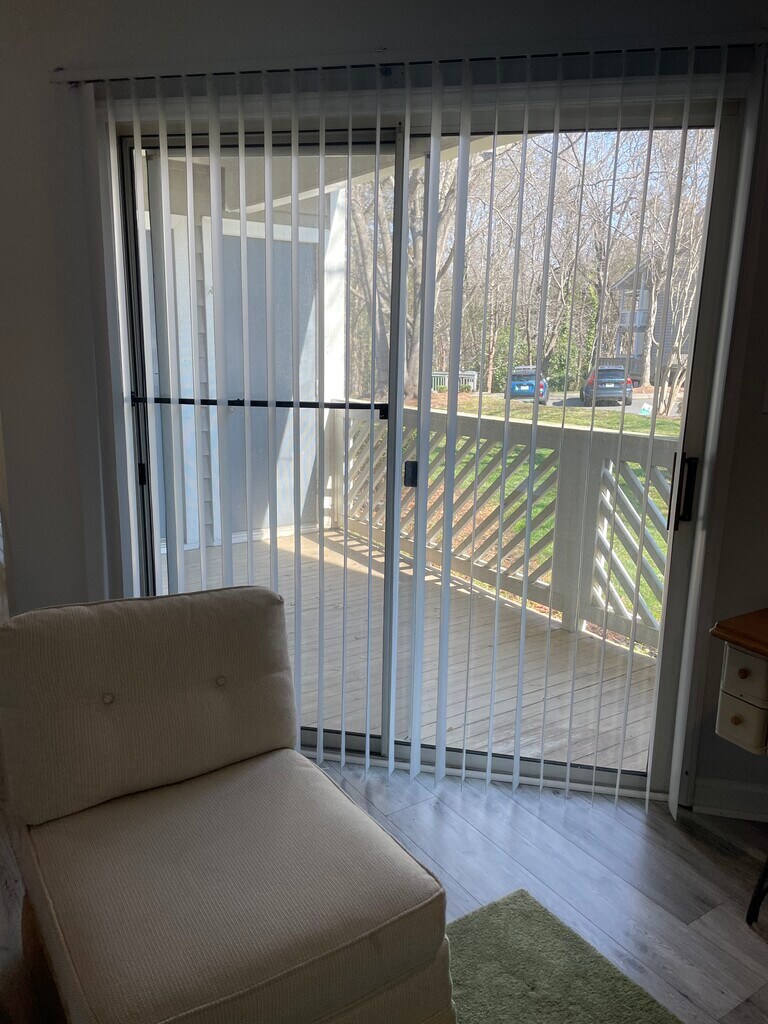 Awesome location! Property is listed for sale on a different site (Z) as a 1 bedroom because the second room that is often used as a bedroom by previous renters doesn’t have a dedicated closet inside the room, but it does have full privacy and it’s own entrance to the half bath which has a door to the shower. Some use it as a bedroom, some as an office, others an office with pull out couch. It’s a ground floor condo that is adjacent to Olde Towne Village which includes a Harris Teeter, several restaurants, Starbucks, UPS store, dry cleaner, CVS, etc. Super convenient! Seller is a NCREC Broker (#181172) who had a family member living in the condo since 2020. Layout is similar to 2BR units in Ashfield Court, but in this unit the second "Bedroom" is set up as flexible space. Like a second bedroom, this room is connected to its own half bath, which has a door to the walk-in shower space. However, this room has folding doors that open to the livingroom, and has limited dedicated closet space, so it is classified as a "flex" room. This room could serve as a bedroom (just add an armoire) or as an office with a pull-out couch for guests, etc. The interior of the condo was renovated in 2020, has had very little wear and tear, and is currently move-in ready. The overall floor plan is open and ideal for guests. The patio is shaded/cool and features an outdoor lockable storage closet. Appliances and furniture currently in the condo are available. Park-like setting. Two parking spots right in front of condo. Mailbox and trash/recycle bins steps from condo entrance. Very convenient all the way around.