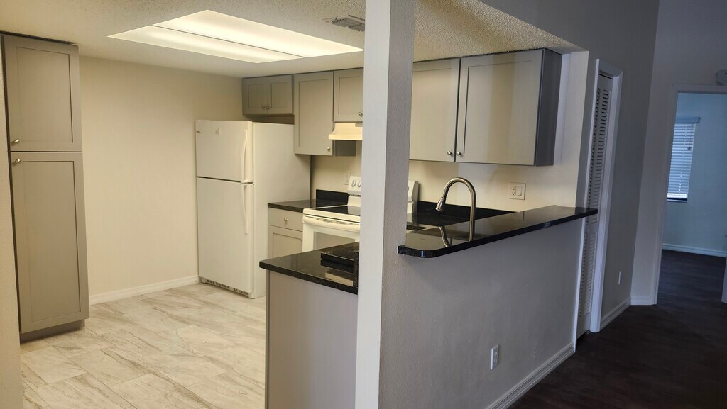 Rare Find! Updated & Affordable 2/2 Duplex in Spring Hill with Garage Don't miss this clean, updated, and reasonably priced 2-bedroom, 2-bath duplex in Spring Hill complete with an attached one-car garage and private driveway parking. A private entry welcomes you into a bright, open floor plan featuring beautiful tile flooring and a spacious kitchen with a breakfast bar. The kitchen boasts black granite countertops, white appliances, dishwasher, premium gray cabinetry, a deep sink with pull-down faucet, and ample pantry space. The large living room showcases high-end luxury vinyl plank flooring and a ceiling fan for added comfort. Sliding glass doors lead to your own private screened-in back patio perfect for relaxing and enjoying the outdoors. Both generously sized bedrooms offer large reach-in closets, and each of the two full bathrooms features stylish vinyl plank flooring. Best of all NO CARPET anywhere! The attached one-car garage provides plenty of storage space, plus additional parking in your private driveway. Conveniently located near shopping, dining, US-19, waterfront marinas, boat ramps, local bars, and stunning Gulf Coast sunsets. Available now! Call today to schedule your showing. Rent includes lawn and exterior pest control