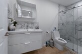 Newly built standalone backhouse. Private gated patio area. Hardwood floors, kitchen with fridge, stove and microwave. Tile Shower. House is set in the back of private compound, safe and quiet. Washer dryer included. Parking right in front of the entrance to the patio. Recessed lights, central air conditioning and heating. Property is fully staged as in pictures. Also available Month-to-Month fully furnished for additional fee.