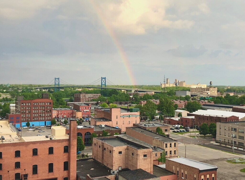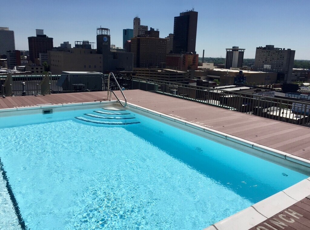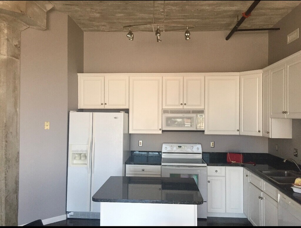Awesome modern loft converted from 1913 warehouse building. Concrete acid washed floors. Original cement pillars. Two bedroom and 1 and a half bath. Corner unit sits on the 4th floor of Ontario Street and Washington Street intersection. Main room view and balcony is of Washington Street. Mud Hens stadium in view from balcony. Blocks away from waterfront; Mud Hens stadium; Huntington Center; farmers market in the summer/fall. One indoor garage parking spot. Pool and grill on roof. Best downtown living spot in Toledo.