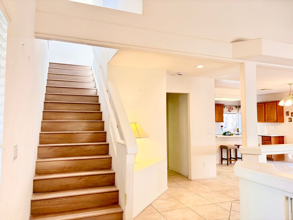 Beautifully upgraded two-story home located in the heart of Southwest Las Vegas. This move-in-ready residence features fresh interior paint, brand-new flooring, and newly upgraded countertops. The stylish kitchen showcases a modern island, sleek countertops, ample cabinetry, abundant natural light, and includes all appliances. Throughout the home, you’ll find elegant vinyl plank wood flooring that adds both durability and warmth. Step outside to enjoy the professionally designed backyard, perfect for relaxing or entertaining.