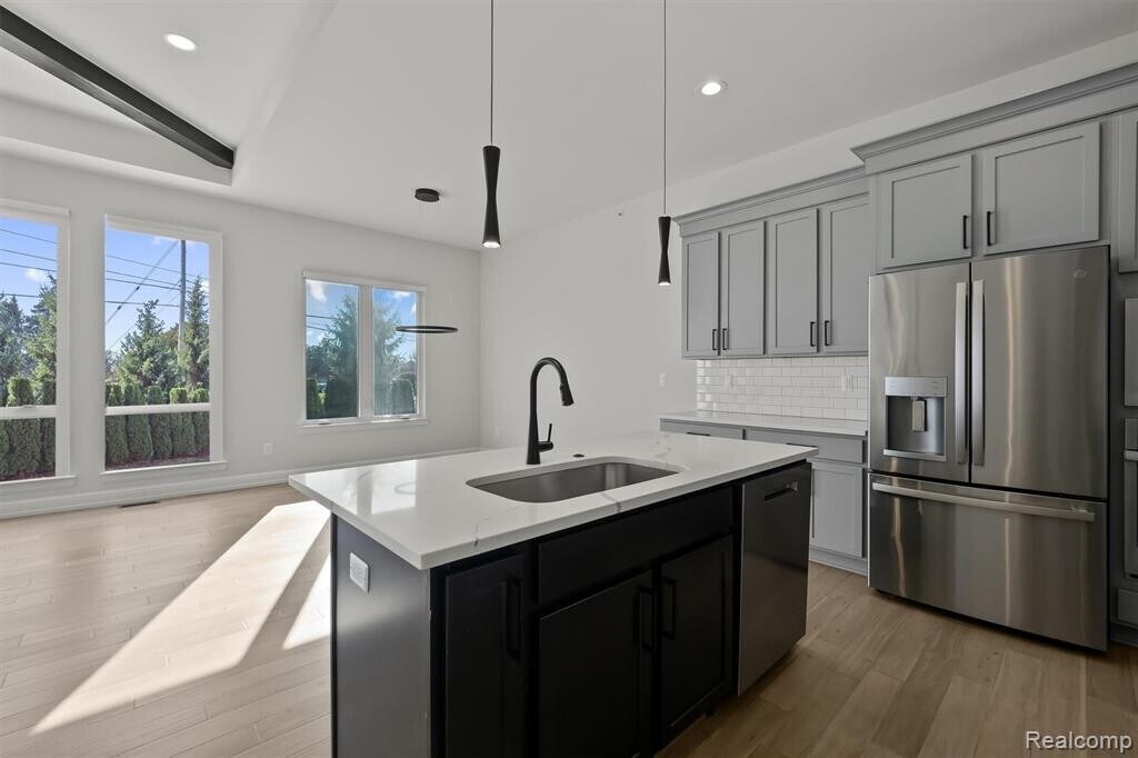 Discover the comfort and convenience of newer construction paired with a highly desirable first-floor primary suite in this beautifully designed two bedroom, two and a half bath condominium. Thoughtfully crafted for modern living, the home blends open-concept gathering spaces with quiet private retreats, all enhanced by soaring ceilings, wide-plank hardwood floors, and abundant natural light. The first-floor primary suite offers true ease of living—featuring a spacious walk-in closet and a spa-inspired bath with dual vanities, a glass-enclosed shower, and stylish designer finishes. Upstairs, a secondary bedroom with its own full bath provides an ideal setup for guests, a home office, or flexible living needs. At the heart of the home, the gourmet kitchen boasts premium cabinetry, quartz countertops, stainless steel appliances, and an oversized island perfect for both everyday use and entertaining. The adjoining great room offers seamless flow, creating a warm and inviting atmosphere for gatherings. Additional conveniences include a discreetly located powder room and a direct-access two-car garage. Situated within a well-maintained community, this residence delivers turnkey living in an exceptional location—close to shopping, dining, and everyday amenities, with easy access to major highways for effortless commuting. A rare blend of style, comfort, and simplicity—move-in ready and designed for refined living.
