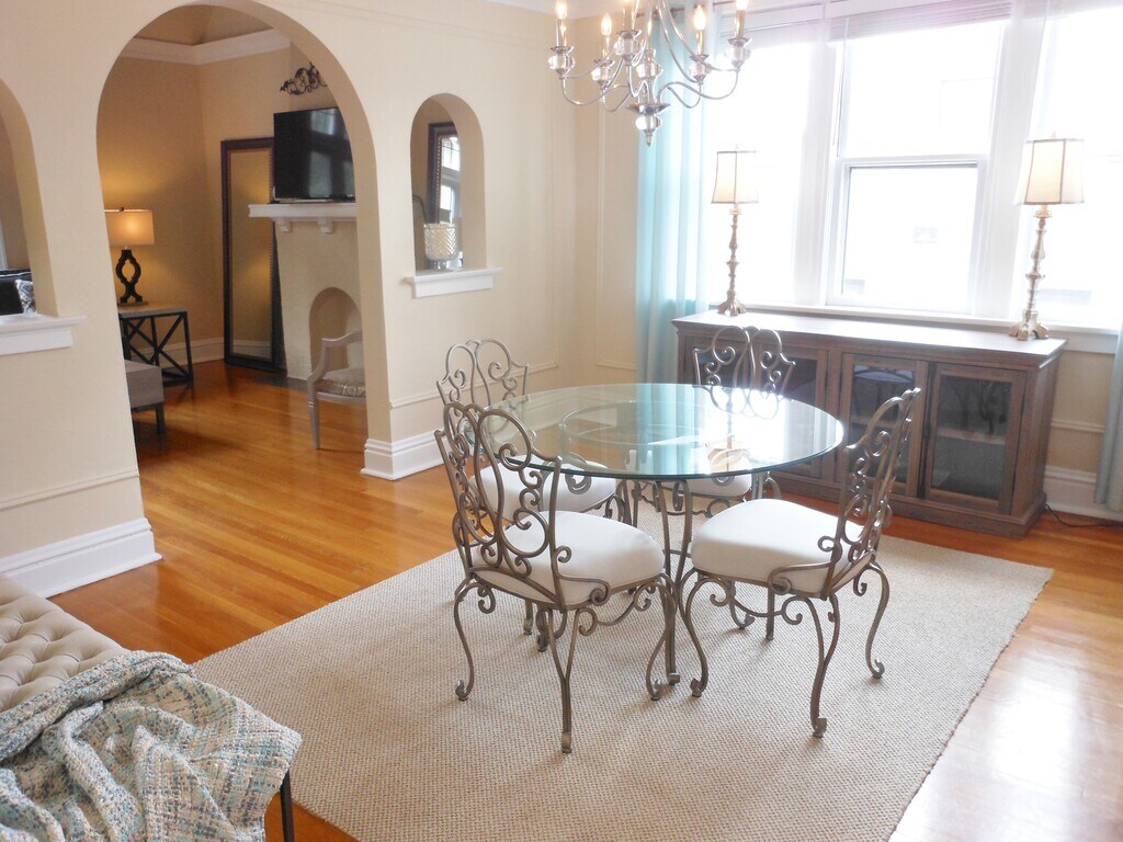 The property has 2+ bedrooms, 2 full updated bathrooms, and an updated eat-in kitchen. This beautiful, bright, spacious apartment is located in a quiet six-family building in the convenient and safe Moorlands neighborhood in Clayton. Walk to excellent Clayton restaurants. The Moorlands is a beautiful, quiet, safe neighborhood with tree-lined streets, minutes away from Washington University and Forest Park. Clayton has convenient access to Highway 64 and 170. • Living room 18' x 13' with Ceiling height 9"9', faux fireplace, stain glass windows, and French Doors leading to a Private Patio • 2 Bedrooms with Ceiling Fans Sizes- 11'4" x 13'10" 10'5" x 13'10" • Updated eat-in Kitchen with Energy Star Appliances- Gas Stove, Refrigerator, Dishwasher, Disposal, New Kitchen floor, New kitchen Countertop • 2 Updated Bathrooms • Dining room 14'10" x 13' • Large walk-in closet 7'6" x 6'10" • Refinished Solid Oak Hardwood floors • Private Patio 17" x 7" • New lighting • Crown molding • Ceilings are 8' plus • Large windows with three exposures create a bright space full of natural light • New 2-inch blinds • New Central heat & A/C • Storage Area • Attached garage with opener • Very well-maintained properties • Located in Clayton / Moorlands • Must have a 680 or higher credit score • 1550 square feet • Smoke Free Properties