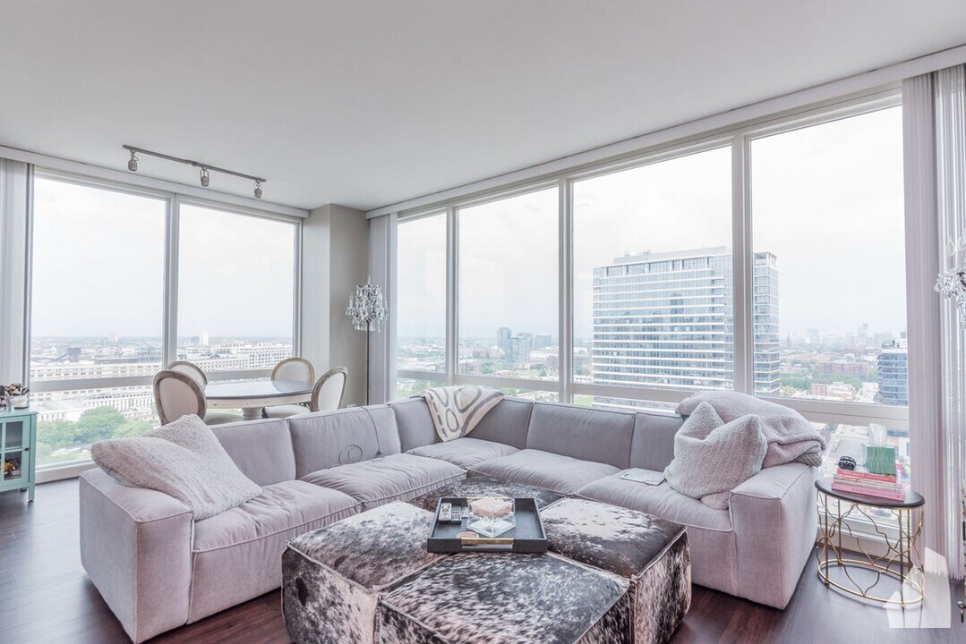 Spectacular 2 bed 2 bath condo in River North! This rarely available tier-9 unit has an open floor plan with floor-to-ceiling windows with fantastic NW city views. A modern kitchen with granite countertops, a breakfast bar, stainless steel appliances, and a dining-living room combo. The spacious master bedroom has an ensuite bathroom with double vanity, walk-in closet. In-unit laundry, central air/heat with dual-zone HVAC system. Pet friendly. Heat, cooking gas, cable, internet & water are all included. One heated garage parking available for $250/month. The building features 24 hour door staff, fitness center, outdoor pool, sun deck, receiving room & bike storage. Steps from Starbucks, Dunkin’ Donuts, Walgreens, Chicago CTA stop, dog park, shopping, restaurants, nightlife, and more! Property management company requires a mandatory Resident Benefits Package for an additional $40.00 per month; includes renters insurance, positive credit reporting for on-time rental payments, identity fraud protection, and more. *All the balconies in the building are not accessible until further notice due to the building's ongoing facade/balcony inspection.-Presented by Fulton Grace Realty