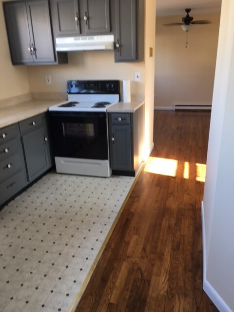 Under renovations. Beautiful 1st floor open floor plan 1 bedroom apartment on quiet street. Lots of natural light, hardwood floors throughout, full open kitchen plan with eating area , full bath with vanity ceiling fans and AC added for your comfort.