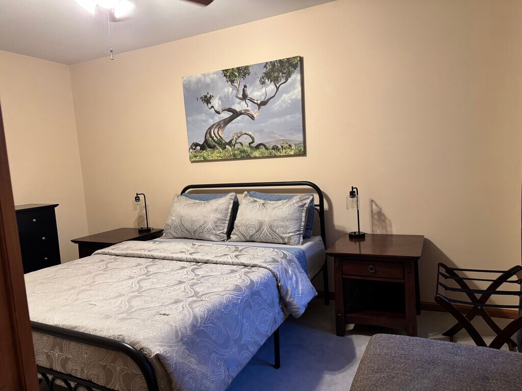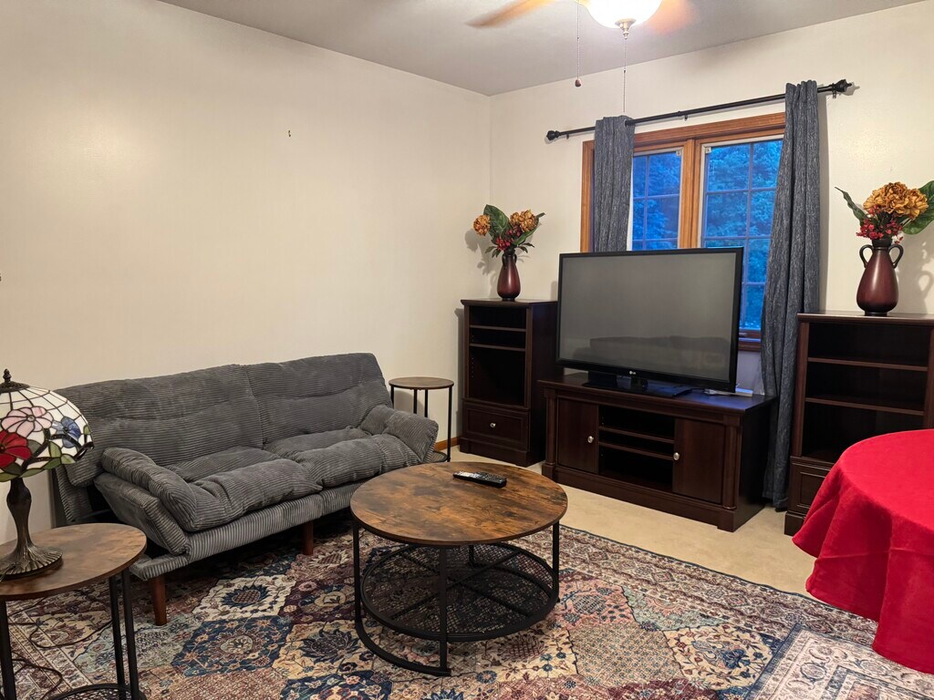 This charming and inviting in-law apartment features its own private entrance and garage parking. The well-equipped kitchen has been freshly painted, and the bathroom has undergone a stylish remodel. Rent includes Wi-Fi, utilities, access to a home gym, a ping pong table, a pool, as well as essential cleaning supplies and toilet paper. We provide cleaning supplies to ensure compatibility with our septic system. Nestled in a tranquil and secluded neighborhood, the property spans 3.5 acres and is bordered by a forest teeming with wildlife. The garden, adorned with cheerful bird feeders, creates a soothing atmosphere filled with delightful bird songs. With numerous walking trails nearby, there’s always something enjoyable to do in this peaceful setting.