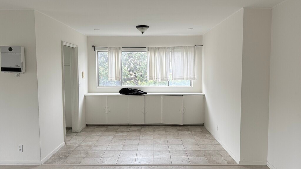 APARTMENT Upper top corner unit in 8-unit building. A/C wall mounted...washer/dryer in building. Also just installed new flooring throughout and newly painted the unit with brand new bathroom with brand new tiles and vanity. Your own garage and garage door not subterranean like other complexes. you park you lock! huge balcony!!! Located approx.. 3 blocks east of fairfax one block south of sunset beautiful spaulding sqaure. The bulding has: elevator, this unit has views of city.