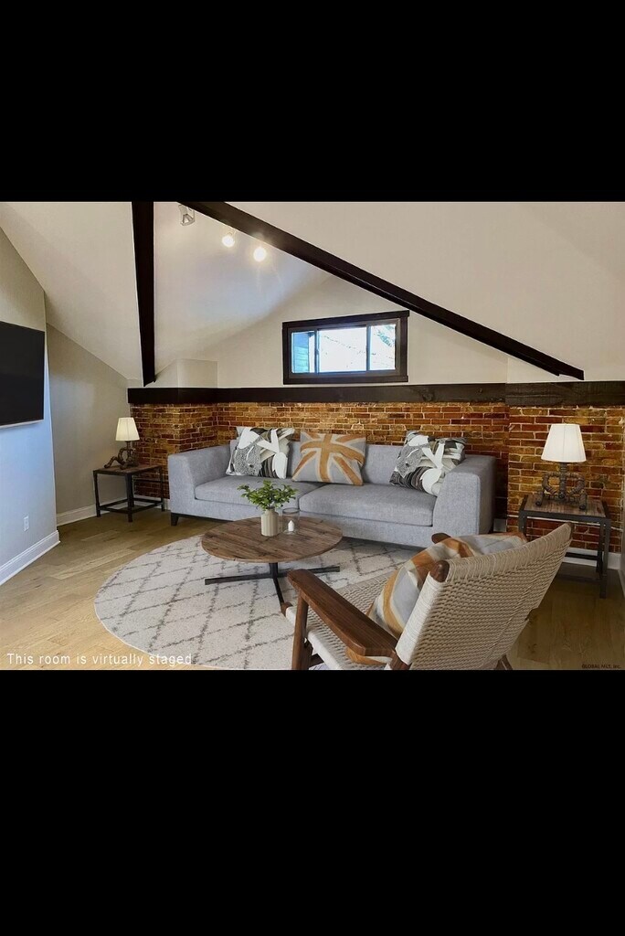Unit 408 is a fantastic fourth floor unit with 2 bedrooms all on one level. 965 sf with vaulted ceiling and timber beams and exposed original brick. Amenities include granite countertops, stainless steel appliances, tiled backsplash, wood flooring, kitchen breakfast bar, bathroom double sinks, decorative lighting fixtures, custom closet package, and washer & dryer. Two surface parking spots are included. This property is perfect for the “lock and leave” lifestyle. Very close to fabulous downtown restaurants, parks and shops. Interior photos are of the actual unit. Exterior Maintenance, Maintenance Grounds, Snow Removal, Trash all included