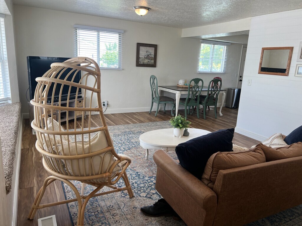 This fully furnished, cozy, upper-level unit is perfect for someone not wanting to move furniture around! Located conveniently near the festive county fairgrounds, hot springs, hiking trails, parks, the renowned rocket garden, and much more! You'll have full access to modern amenities, comfortable furnishings, and a warm ambiance that will make you feel right at home. Whether you're here for a month or an extended stay, this inviting space is designed to provide you with the utmost comfort and convenience. This is a fully furnished apartment with all amenities including water, gas, sewer, internet, and electricity included in the monthly rent. Minimum of 1 month lease is optional up to 12 months long. Background checks are required at the tenants expense of $35/person. Proof of income is required. No smoking, vaping, or e-cigarettes of any kind are allowed. No pets due to severe allergies of other tenants and homeowner.