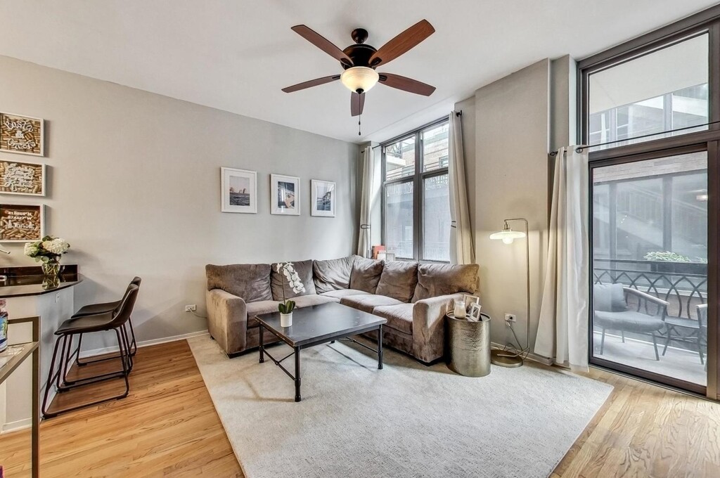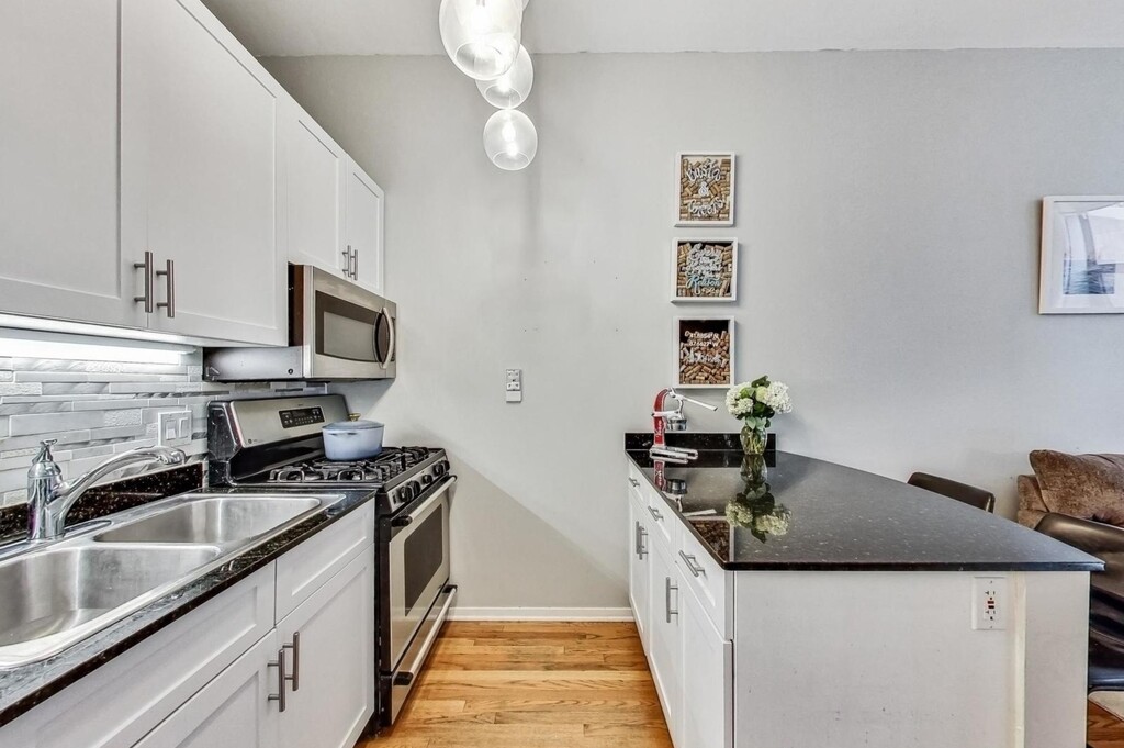 Bright and stylish West Loop home with 1 bedroom and 1 bathroom, right across the street from Skinner Park! This condo is in a great building called the Promenade. The home is well-designed and has a kitchen that's been updated with shiny stainless steel appliances, fancy granite counters, pretty hanging lights, and new white cabinets. Inside, you'll find nice wood floors, a washer and dryer that you can use in the home, and a cozy fireplace that uses gas. The bedroom is big with lots of closet space, and the bathroom is connected to it. There's also a cute balcony where you can see the sunrise, and it even has a special gas line for a grill. You can keep extra stuff on the second floor. It's easy to walk to the CTA, Metra trains, downtown Loop area, Target, Marianos, Whole Foods, and all the cool things the West Loop has.
