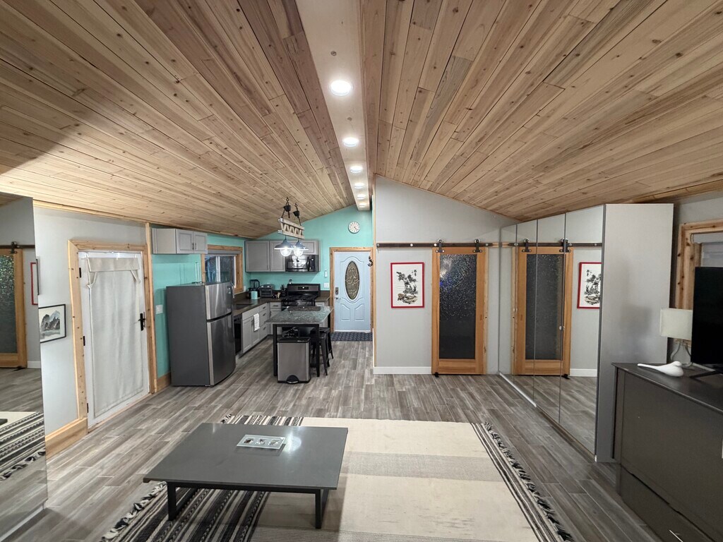 Turnkey Furnished Retreat Move in with just your personal items—this brand-new ADU is fully furnished and ready for immediate occupancy. Enjoy a flexible queen-size Murphy bed, fully stocked kitchen, and ample built-in storage including four large mirrored wardrobes. High-end modern finishes include quartz countertops, granite island, stainless steel appliances, mini-split A/C & heating, and durable wood-look tile flooring throughout for effortless style and comfort. The spa-like bathroom features a spacious custom walk-in shower with rain head, designer fixtures, and a standalone vanity. Warm cottage charm comes from wood ceiling accents and elegant lighting, blending cozy vibes with contemporary design. All utilities included (water, power, sewer, trash, landscaping, security lighting) + cable/internet ready—no surprise bills. Nestled in a peaceful residential neighborhood with quick access to West Valley shopping, dining, and freeways—perfect for professionals, remote workers, or couples seeking privacy and convenience. This rare blend of new construction, luxury features, total privacy, and hassle-free living offers exceptional value in the area. A true peaceful retreat awaits!