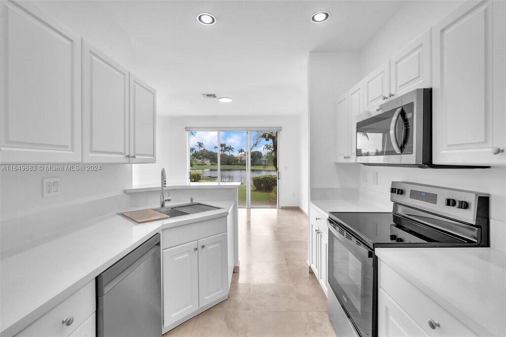 Step into luxury and spacious living in this fully updated townhouse, within a resort-style private community. The property includes 3 spacious bedrooms and 2.5 bathrooms. This spacious home offers comfort and style with brand new and never used kitchen appliances, brand new contemporary countertops, brand new modern and updated light fixtures, tile on the first floor, wood vinyl on second floor, fresh new paint, refreshed bathrooms, and a beautiful lake view. Unique washer and dryer laundry room located on second floor. Indulge in the exclusive amenities of this well maintained and sought after community, from three swimming pools, tennis courts, soccer field, gym, basketball courts, fishing dock, volleyball court, children playground, yoga room, and more.