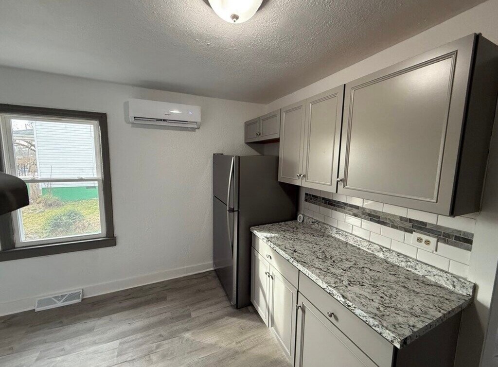 This property features 2 bedrooms and 1 bathroom within a total of 1,040 square feet. The living room offers ample space for relaxation and is complemented by hardwood floors. The kitchen is equipped with stainless steel appliances, granite countertops, a microwave, and a pantry for additional storage. Additional amenities include heating and air conditioning, as well as washer/dryer hookups for convenience. The exterior features a lawn and a porch, providing outdoor space for enjoyment. This smoke-free property is available for rent at a competitive price.