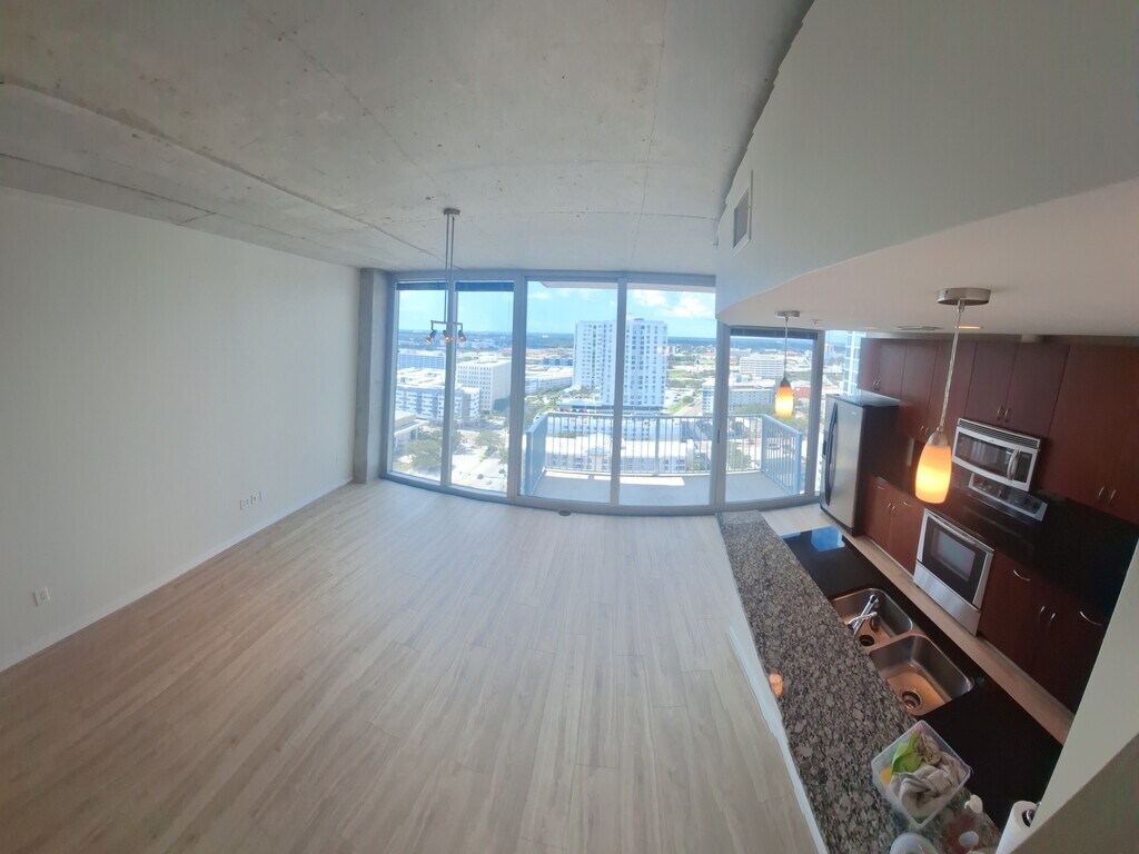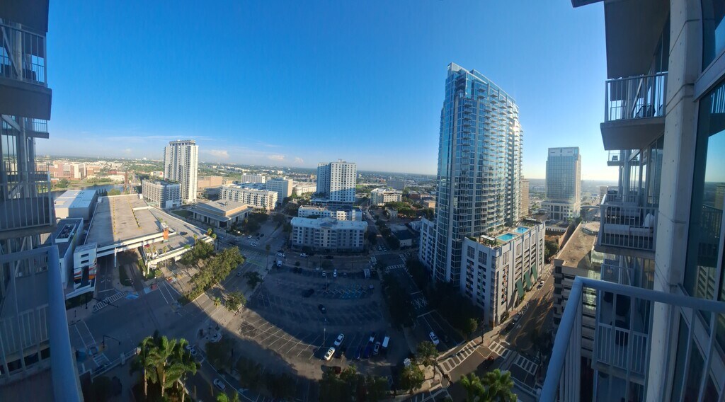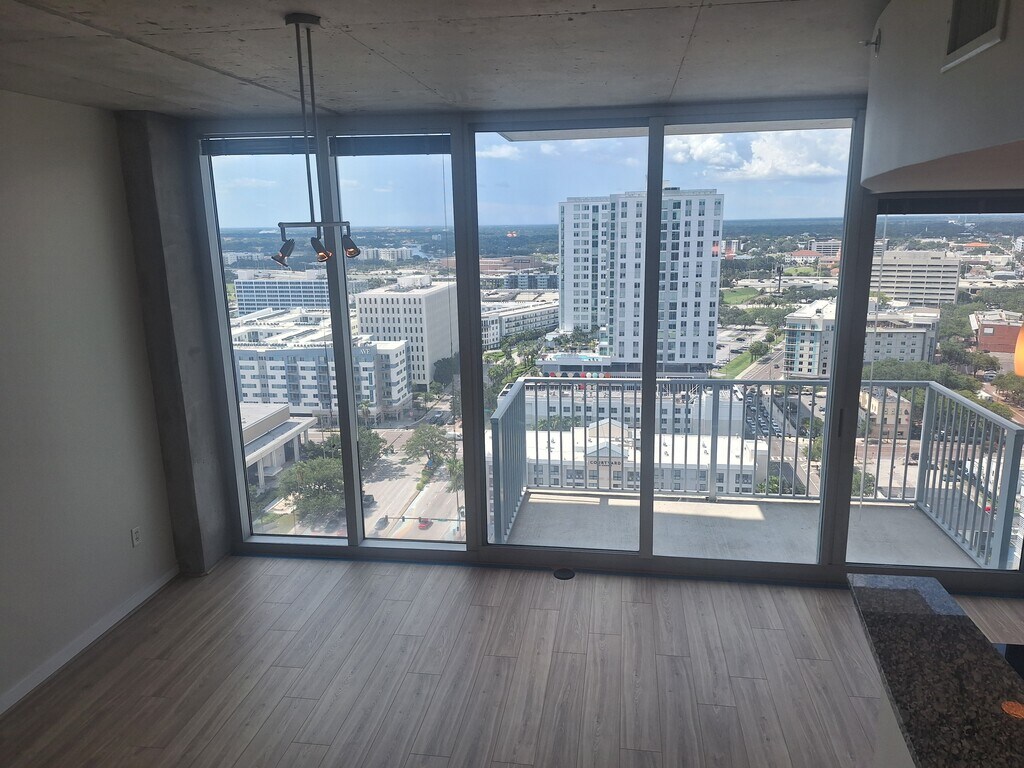 Enjoy panoramic views from the 20th floor in your Skypoint condo on Ashley Drive in downtown Tampa. Live in the center of it all - Downtown Arts District, Tampa Office Towers, University of Tampa, Curtis Hixon park, restaurants, and entertainment all nearby. This large (772 sq ft) 1 bedrooom, 1 bath condo offers BRAND NEW wood-look laminate flooring and freshly painted walls. Experience upscale urban living in this open floorplan with 10-foot ceilings, floor-to-ceiling windows and a private balcony to maximize the view. For added quiet and comfort, this unit is located away from the trash chute, elevators and stairwell. The open concept kitchen features granite countertops, modern cherry cabinets with stainless steel appliances, including dishwasher, disposal, microwave, oven, refrigerator, and a breakfast bar perfect for casual dining or entertaining. The primary suite is large enough for a king-sized bed and features a large walk-in closet, built-in computer desk, washer dryer in a separate closet and a modern bathroom with shower/tub. SkyPoint offers a resort-like lifestyle with many amenities and services. These include a fitness center with cardio equipment, free weights and exercise room. The clubroom features a full kitchen, billiard table, theater room, videogaming, and seating areas which can be reserved for private events, at an additional charge. The 8th floor deck includes a heated pool and spa on one side and an urban garden on the other side, both with grilling and entertaining space. The building provides 24/7 concierge services and secure building and resident floor entry with secured fob access. Enjoy the vibrant downtown lifestyle with restaurants and bars right on the ground floor. This prime location places you directly across from Curtis Hixon Waterfront Park, Tampa Riverwalk, Straz Performing Arts Center, Tampa Museum of Art, and Glazer Museum. Explore nearby Tampa Theater, Julian B Lane Riverfront Park, Water Works Park, and Armature Works, all within easy reach. Discover the bustling Water Street Tampa, Amalie Arena, Channel District, and Ybor City. Enjoy the proximity to The University of Tampa, Tampa General Hospital, USF Health, Harbour Island, Davis Islands, Cruise Port, and Tampa International Airport. Easy access to I-4, I-275 and the Crosstown Expressway. The unit includes one assigned parking space in the building. Rent includes internet and trash. No pets allowed per condo association rules. This condo owner does have a leasing certificate, as required by Skypoint in order to lease a condo in the building. PLEASE SCHEDULE AN APPOINTMENT TO VISIT SKYPOINT TODAY!