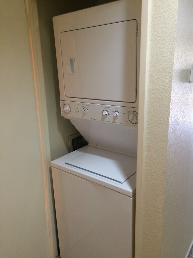 Upstairs Corner Unit. Freshly painted and new carpet throughout. This 2 bedroom, 2 bath condo has laundry in the unit and 2 off street parking spaces 1 of which is covered and assigned. The other spot is a parking permit to park in an open uncovered spot. Located in the beautiful Camelot complex with access to all the pools of Camelot and Eastlake lake pool. Small pet under 20 lbs Ok. There is extra storage on the balcony. The unit is 1 level on the second/top floor.