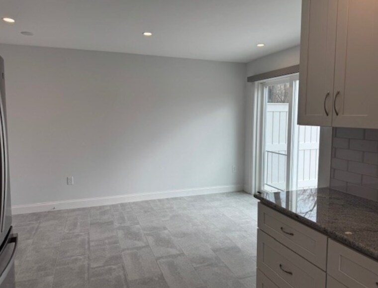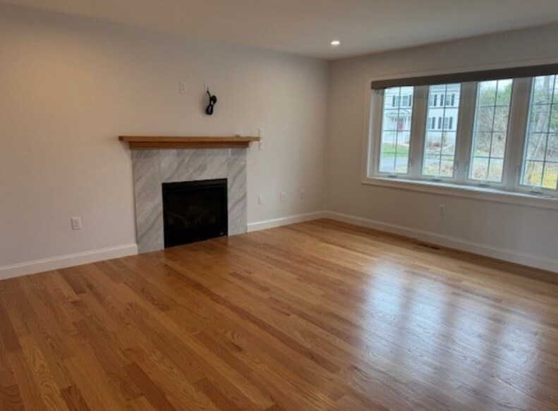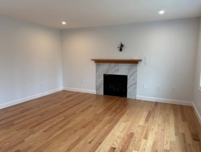 Gorgeous- brand new construction! Not your typical rental w/ EVERYTHING INC! This townhouse style apartment features all the modern amenities situated at the end of a quiet cul de sac. First floor open concept living room with big bay window and gas fireplace ready for a tv mount leading to the dining area with large closet and sliders to a bright sunny private deck overlooking an expansive fenced in shared yard. The modern kitchen has nice pantry for additional storage, beautiful granite counter tops and stainless steel appliances. Gas cooking range, fridge, dishwasher and microwave all included. There is a 1/2 bath off the kitchen. Upstairs has 2 big bedrooms - the first one has over-sized double closet and the main bedroom has a walk in. Spacious full bath with double sinks, stackable laundry unit and beautiful glass enclosed tub/shower with attractive tile work. Hardwood floors thru out, 2 zones heat and ac.