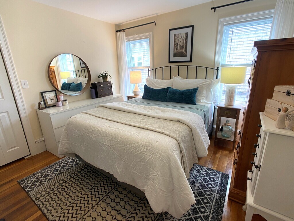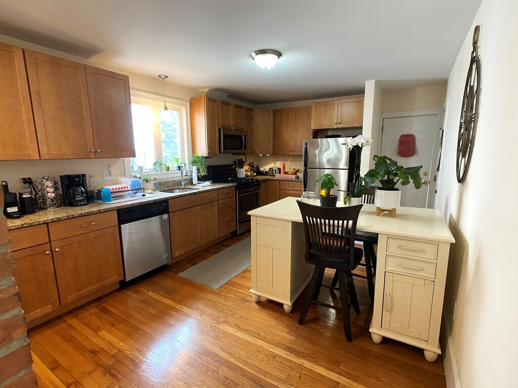 Luxury 3 bed apartment in Somerville’s desirable Ten Hills neighborhood, just a 7-minute walk to Assembly Orange Line T station and steps from all the shopping, dining, and entertainment options at Assembly Row. This fully renovated home features oversized bedrooms with huge 8-ft+ closets, high ceilings, and a bright open-concept kitchen/living area with granite countertops, maple cabinets, and new stainless steel appliances including gas stove, dishwasher, and built-in microwave. Enjoy central AC, hardwood floors throughout, and a private deck overlooking a shared backyard. The unit includes a private laundry area, dedicated basement storage, and energy-efficient systems with full insulation, new windows, and updated gas heating and hot water. Each room is wired for cable and internet. Entryway with intercom system. Ideal location for professionals seeking luxury, space, and access to the best of Somerville.