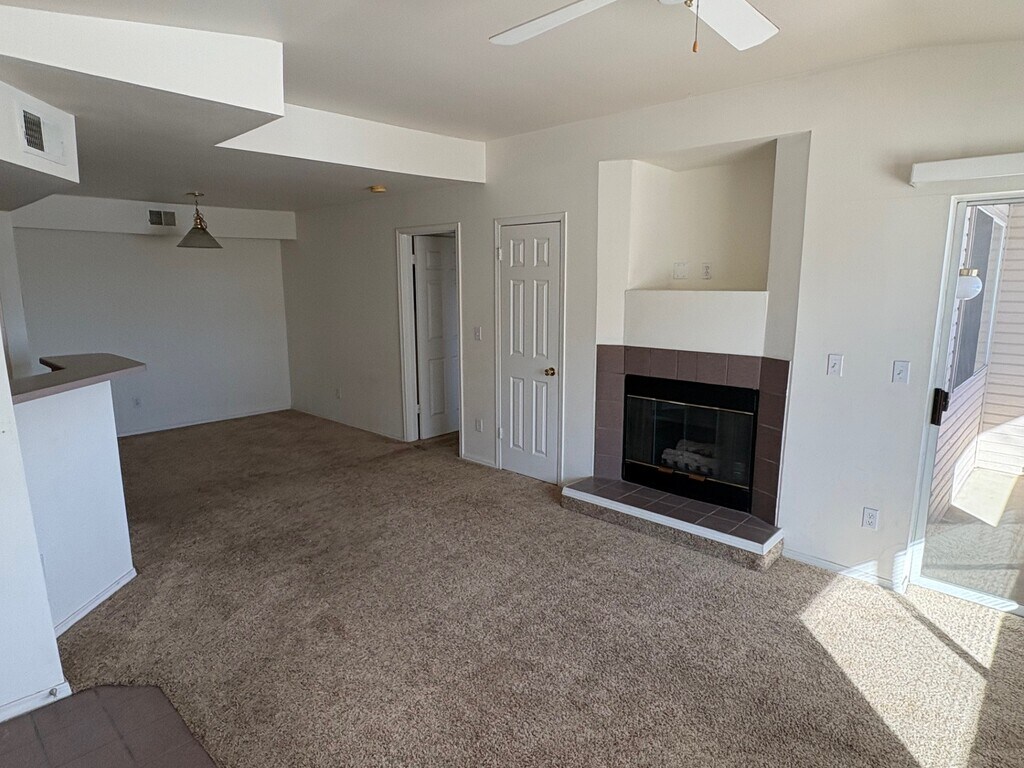 Cute 1 bedroom 1 bath 2nd floor condo. 1 assigned parking space. Association Pool. A/C, gas fireplace, washer dryer hook ups. Right off of Dillion Rd and Dahlia.