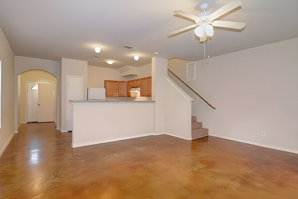 There is currently a 3 Bed 2 Bath Townhome for rent with 1,270 listed at 7818 Kingsbury Wood. It is Available April 1, 2026.